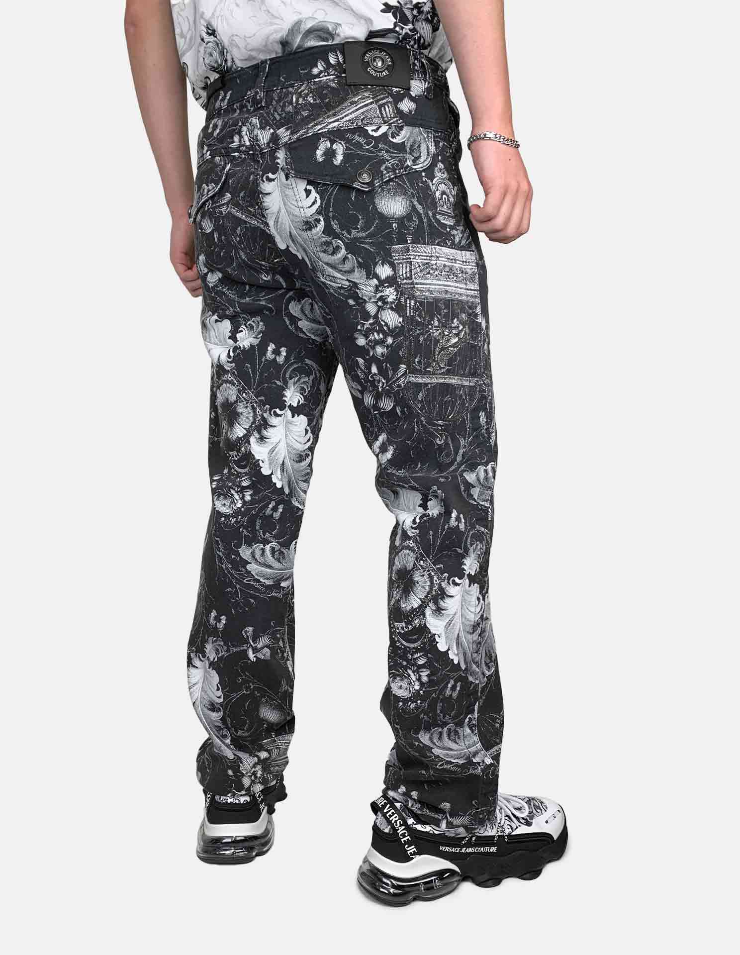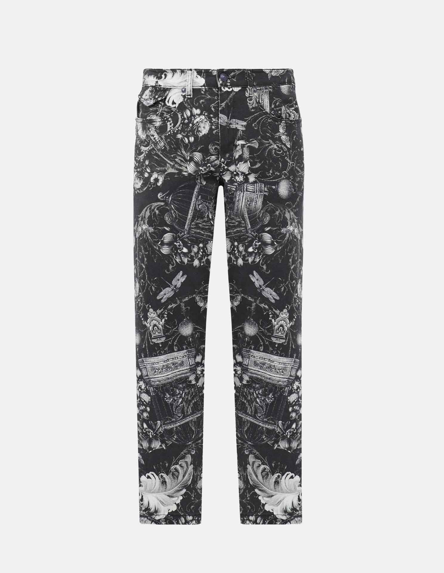 Redefine luxury streetwear with these slim-fit jeans, featuring an all-over Cabinet De Curiosité print that fuses archival motifs with modern edge. The high-contrast, intricate design creates an unmistakably bold aesthetic rooted in maximalist tradition. Crafted from premium denim, they deliver a sleek, tailored silhouette, resulting in the ultimate statement piece for an unapologetic, high-fashion attitude.