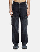 These relaxed fit Diesel cargo jeans merge utilitarian edge with contemporary denim design. Crafted in a dark wash with subtle fading, they feature oversized flap pockets on the thighs and reinforced seam detailing for a rugged look. Finished with a wide-leg cut, they balance functionality with Diesel’s signature urban attitude.
