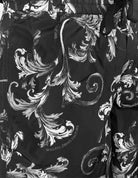 These Versace Jeans Couture shorts fuse casual comfort with baroque opulence. Cut in a relaxed fit, they feature a black base adorned with swirling white ornamental motifs, showcasing the brand’s iconic aesthetic. An elastic waistband with drawstring ensures ease of wear, making them a bold yet versatile piece for laid-back luxury.
