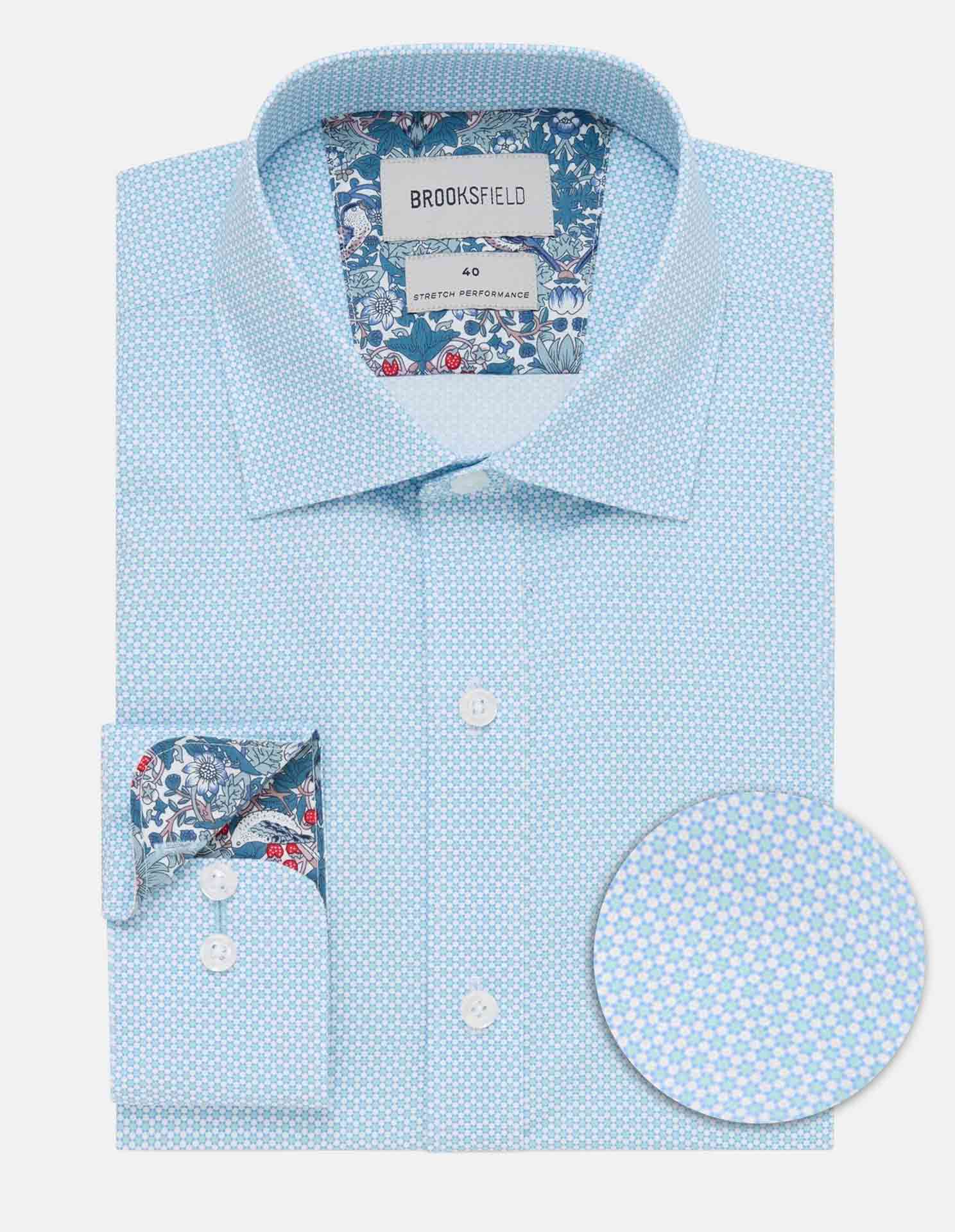 Brooksfield Stretch Performance Regular Fit Shirt, a stylish choice for both work or a special occasion. Patterned with green geometric shapes, this shirt offers exceptional comfort, durability, and a stretch for ease of movement.