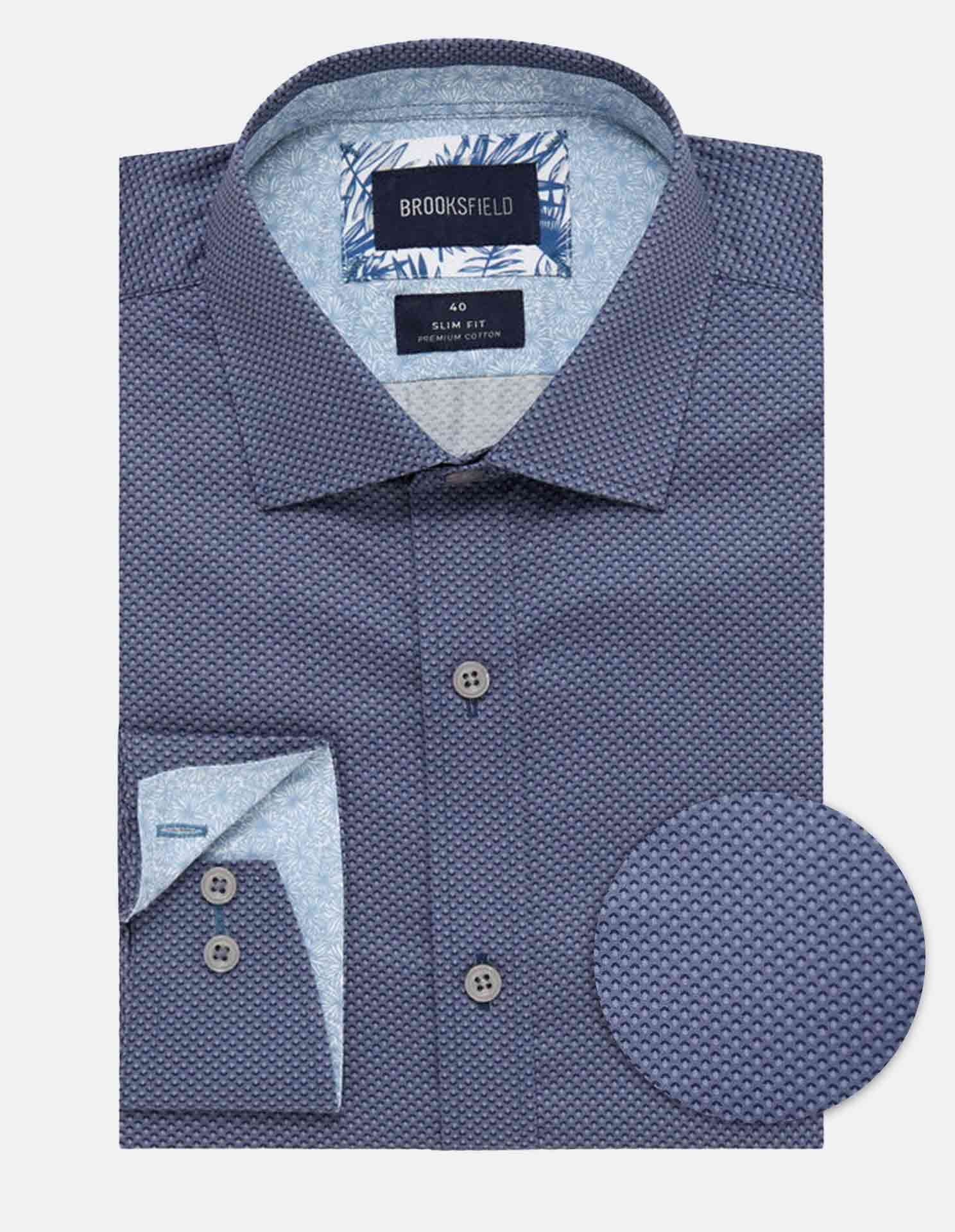 Crafted from 100% premium long-staple cotton in a sateen weave, this slim fit shirt offers a silky-soft feel with reduced creasing and a refined sheen. A grey geometric print adds a modern edge to classic tailoring. A sharp choice for any business setting or formal events.