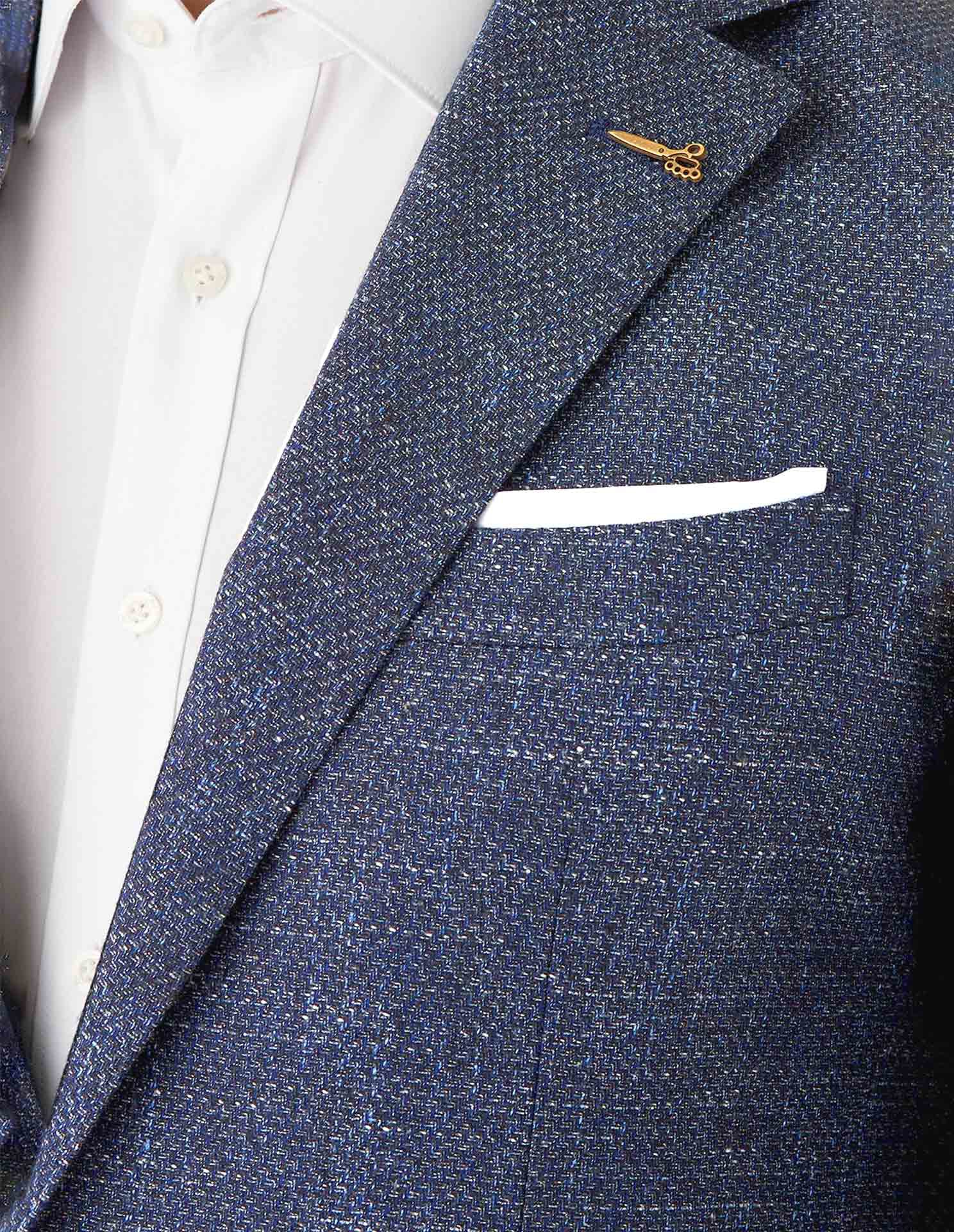 Made from Marlane, a prestigious Italian mill, this tailored-fit Black Guard jacket features a navy base with blue and taupe threads running through for a stylish edge to your sophisticated look.