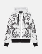 Untamed yet regal, this regular fit hooded sweat jacket features an all-over Outline Barocco acanthus plant print. The monochromatic contrast makes this a subtle, yet distinctly Versace Jeans Couture piece.