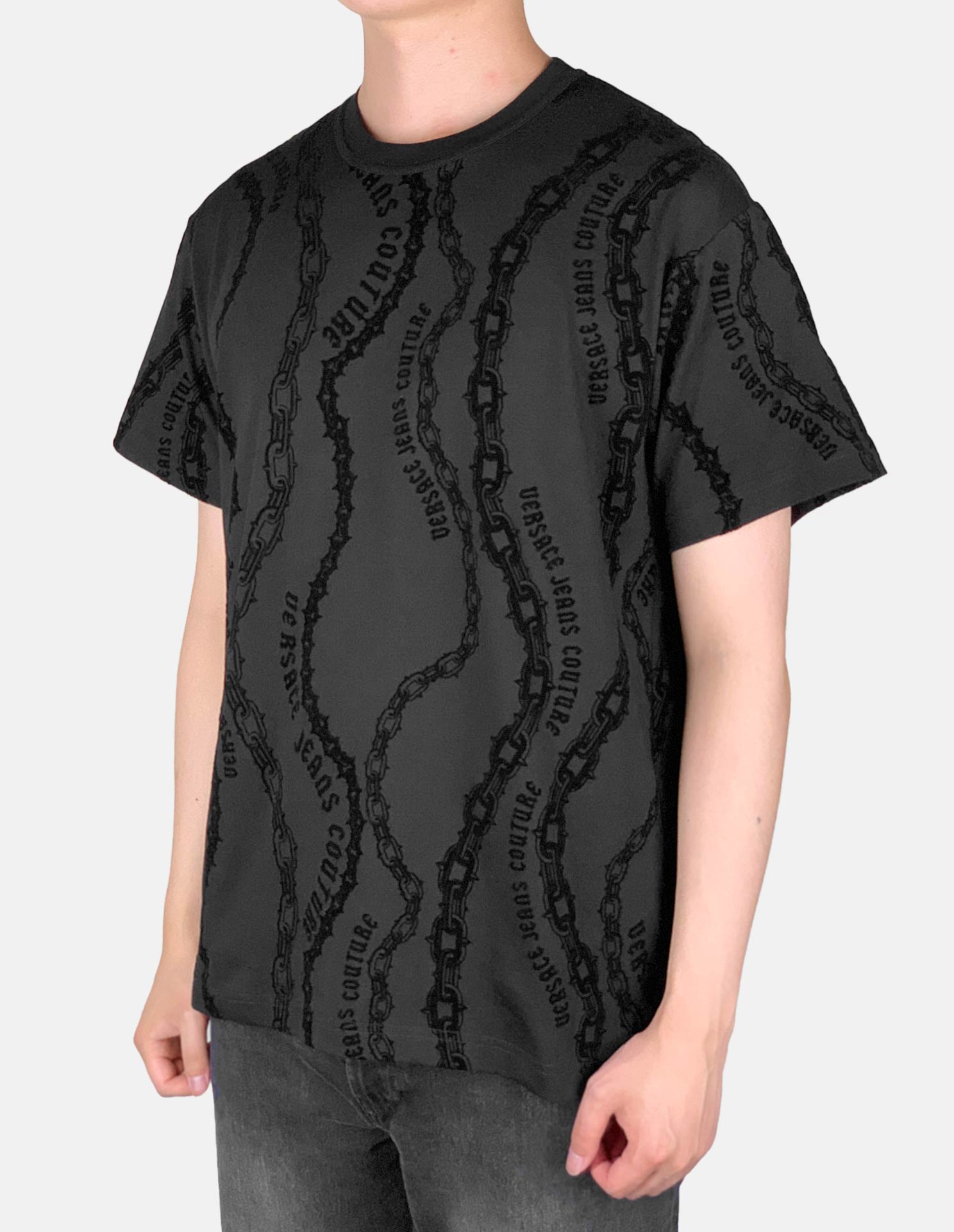 This cotton t-shirt features a stunning velvet-finished Chain Couture motif. The lightweight regular-fit tee with an all-over logo-chain print, and the crew neck and straight hem offer a classic fit. A stylish and textural statement piece for any wardrobe.