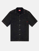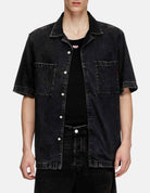 This Diesel short-sleeve denim shirt delivers rugged style with a clean, modern edge. Cut from black washed denim, it features a relaxed fit with a button-up front, two chest pockets, and subtle fading for a lived-in feel. Finished with the signature Diesel logo tab for a touch of identity, it’s a versatile piece that works layered or worn solo.