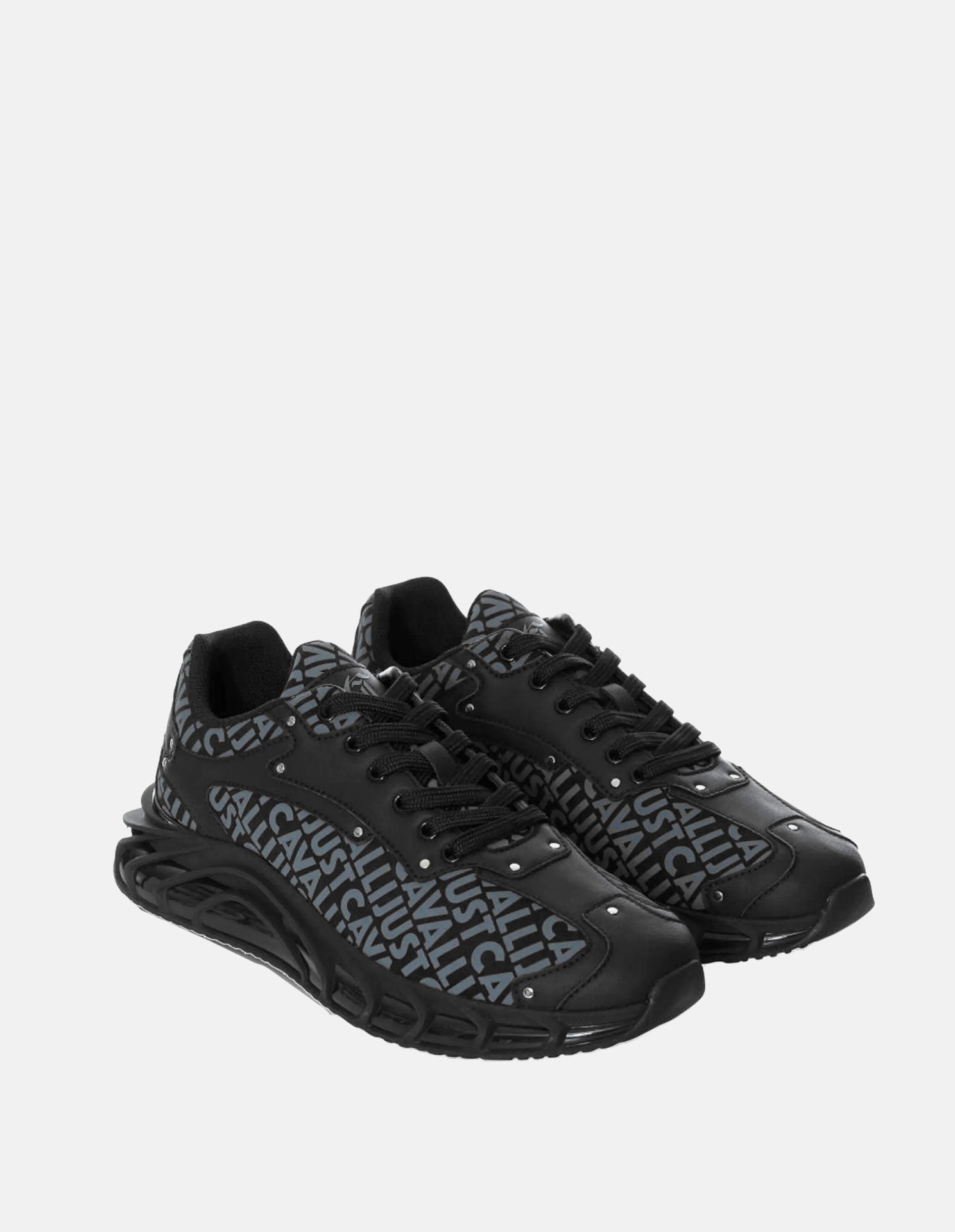 These Just Cavalli sneakers bring bold energy to modern streetwear. Set on a sculpted black sole with futuristic cut-out detailing, the design is wrapped in an all-over logo print for maximum impact. Sleek overlays and tonal laces complete the look, making them a statement sneaker that fuses comfort, edge, and unmistakable brand attitude.
