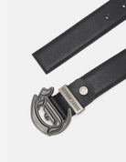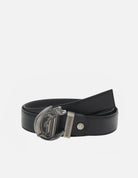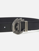 This full leather belt featuring the gothic JC logo buckle in dark silver-tone completes the look by accessorising