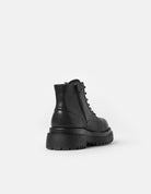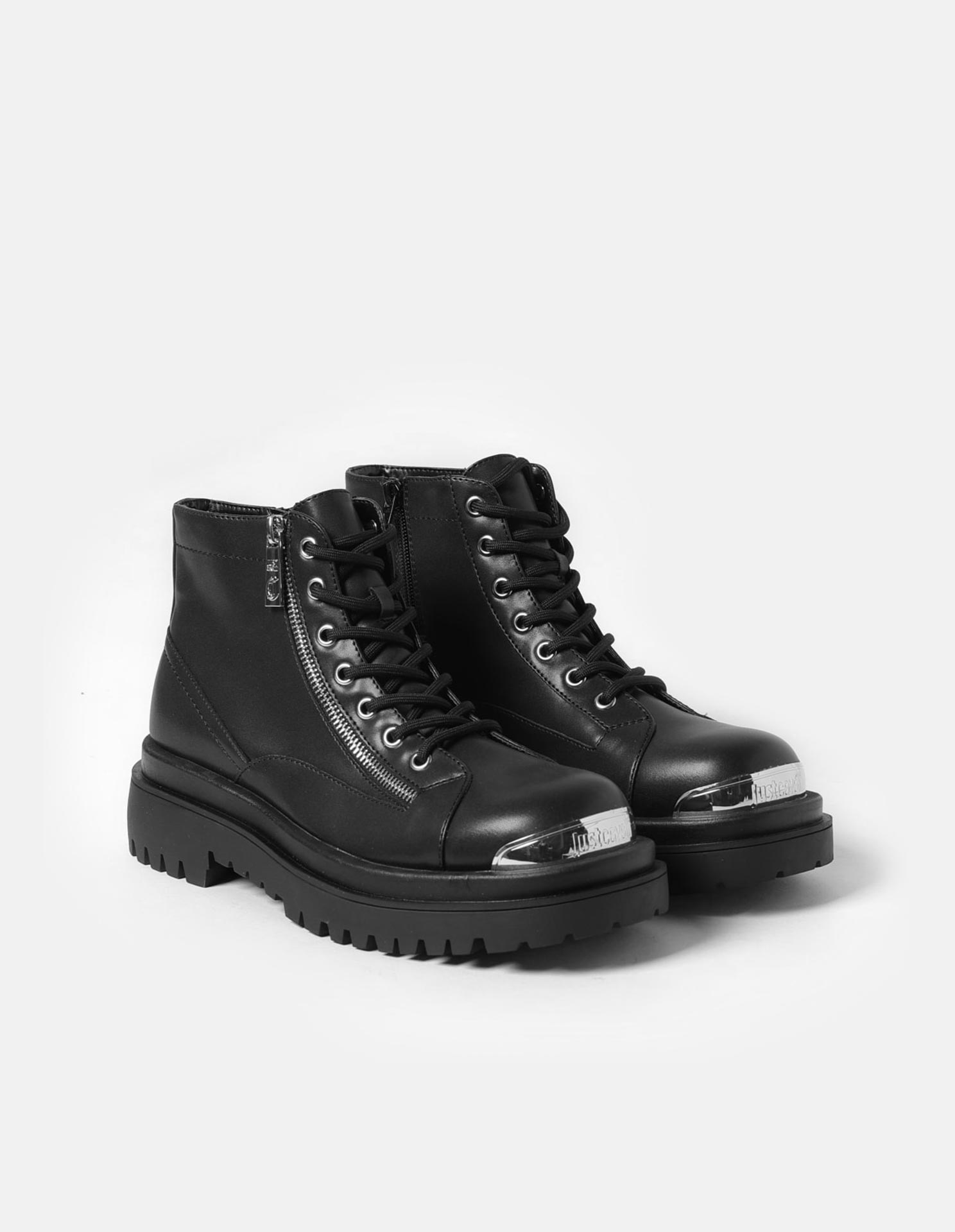 Command the street with unapologetic attitude in these black leather boots, defined by a sleek silhouette, bold metal toe detail, and striking side zip accent. Set on a rugged lug sole for fearless elevation, they fuse rebellious edge with high-fashion allure—made for those who own every step.