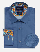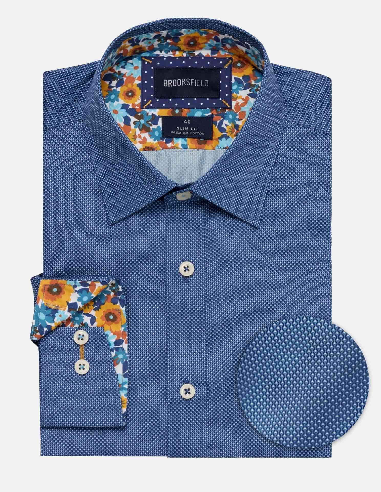 Crafted from premium long-staple 100% cotton in a sateen weave, this slim fit shirt offers a silky-soft feel with reduced creasing and a refined sheen. A blue dot geometric print adds a modern edge to classic tailoring. A sharp choice for any business setting or formal events.