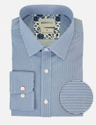 Brooksfield Stretch Performance Regular Fit Shirt, a stylish choice for both work or a special occasion with blue geometric print. Crafted from a premium blend of 97% cotton and 3% spandex, this shirt offers exceptional comfort, durability, and a stretch for ease of movement.