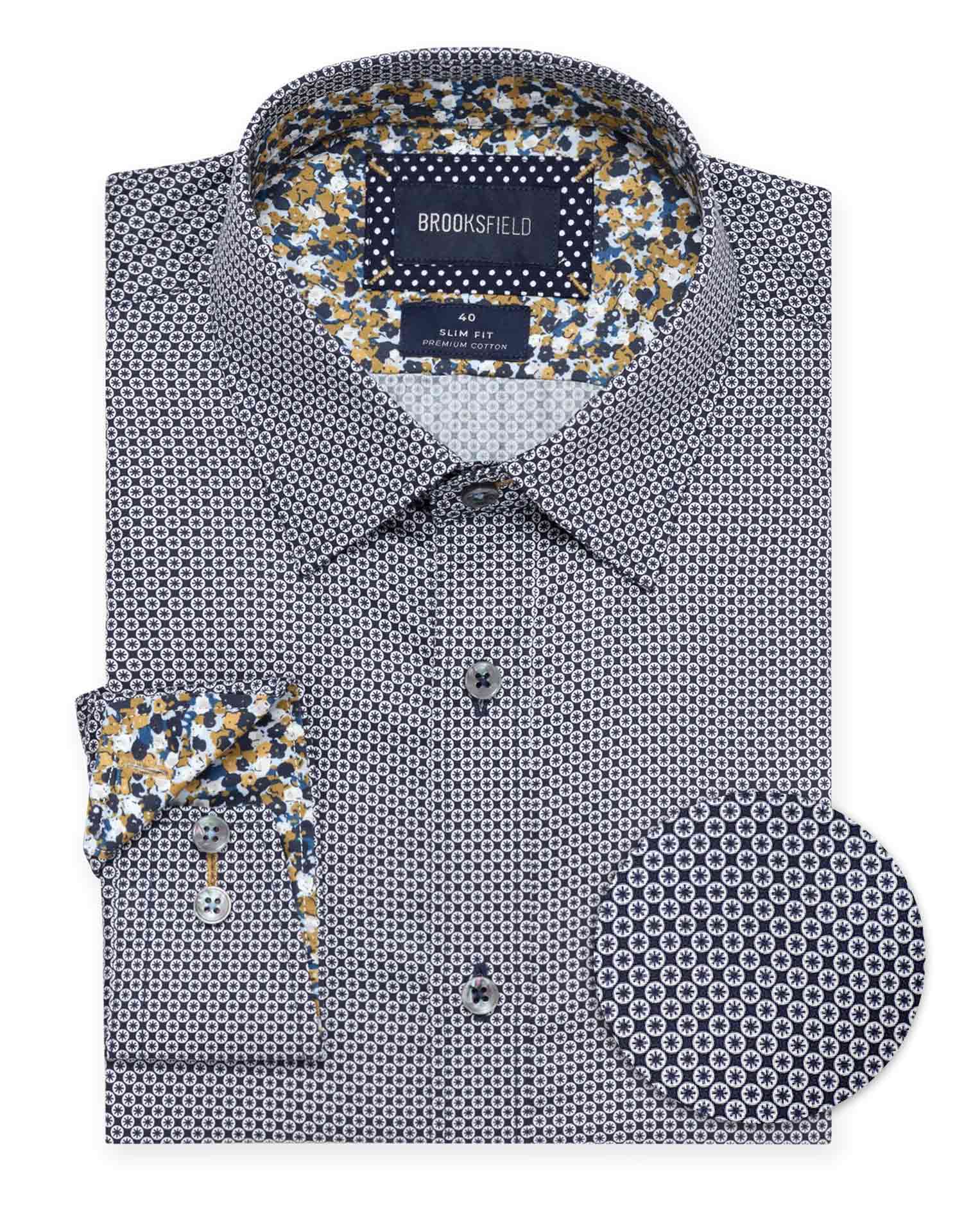 Navy Circle Motif Slim Fit Shirt