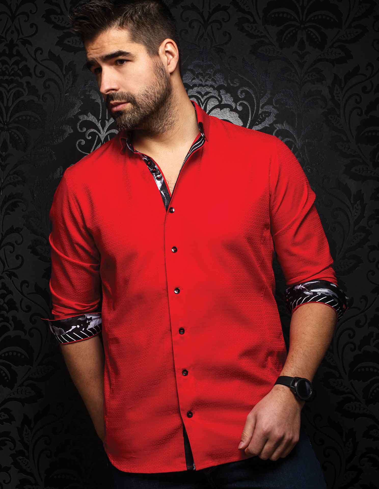 This red satin stretch button-down dress shirt is stylized, designed and developed in Montreal, in the Canadian province of Quebec, and is then crafted with 100% Egyptian Cotton in Turkey. Fitted to the body but not skin tight, they drape properly over the shoulders and under the arms allowing for flow and freedom of movement.