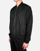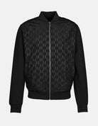 Effortlessly sleek and unmistakably refined, this Karl Lagerfeld Monogram Bomber Jacket elevates a streetwear staple with couture precision. Crafted from a structured yet lightweight fabric blend, it features a tonal K-monogram pattern across the front, creating subtle texture and visual depth. The soft jersey sleeves and ribbed trims ensure a comfortable fit, while the silver zip closure adds a polished contrast. Finished with the iconic Karl silhouette logo at the chest, it embodies the designer’s balance of modern edge and timeless sophistication. Perfectly paired with black denim or tailored joggers for a bold, monochrome statement look.