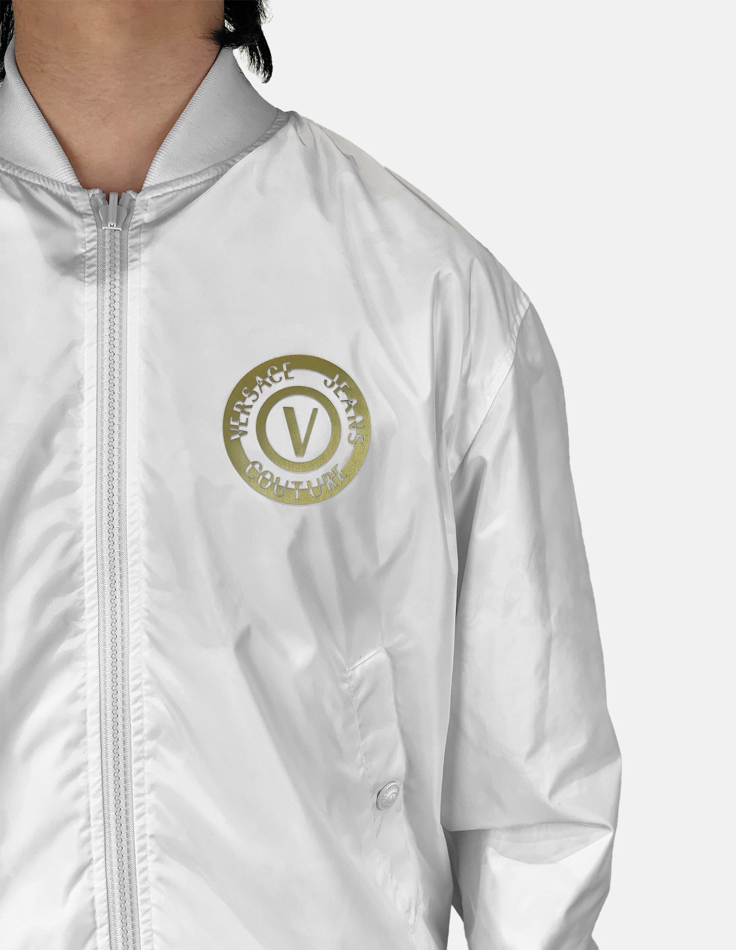 Staying true to the distinctive Versace gold, this reversible jacket features the reimagined hand-watercolour baroque for those bold and a reversible straight white jacket with Versace Jeans Couture 'V' emblem for something more subtle but still have that Versace touch