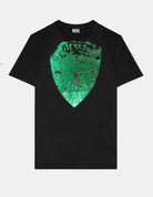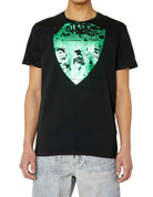 Cotton jersey, regular slim-fit T-shirt with a destroyed Diesel cracked foil shield in green emblazon front.