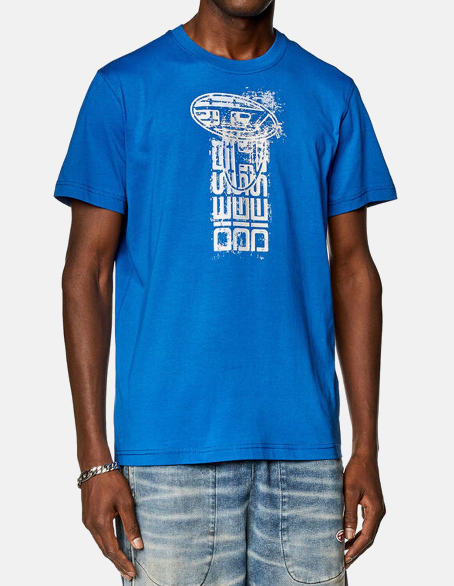Printed in metallic ink, this slim fit tee features a combinations of Diesel logos overlayed on white cotton jersey, this tee is a versatile wardrobe staple with that distinctive Diesel edge