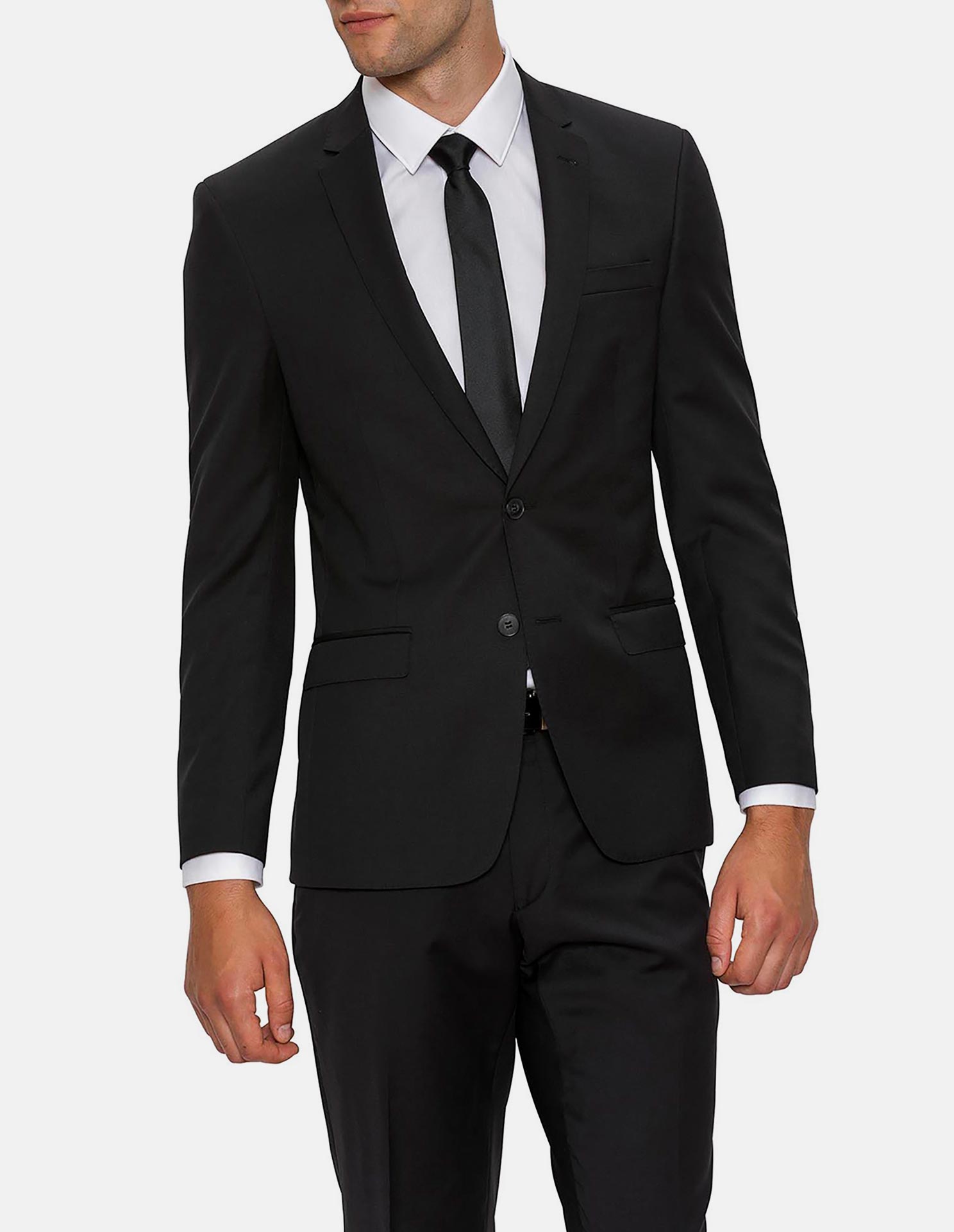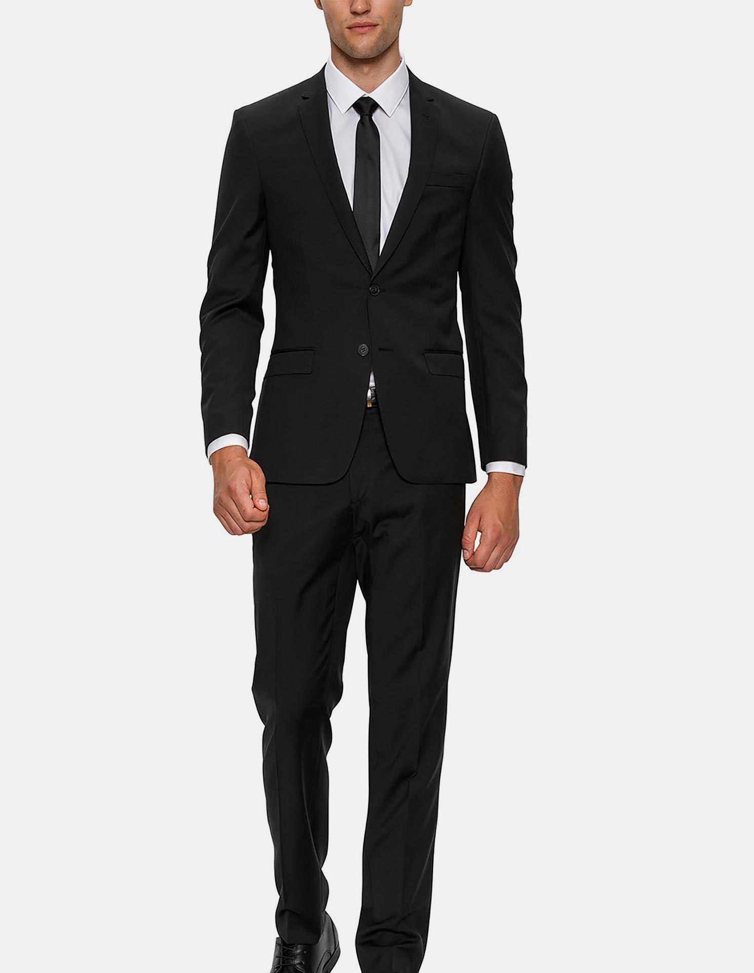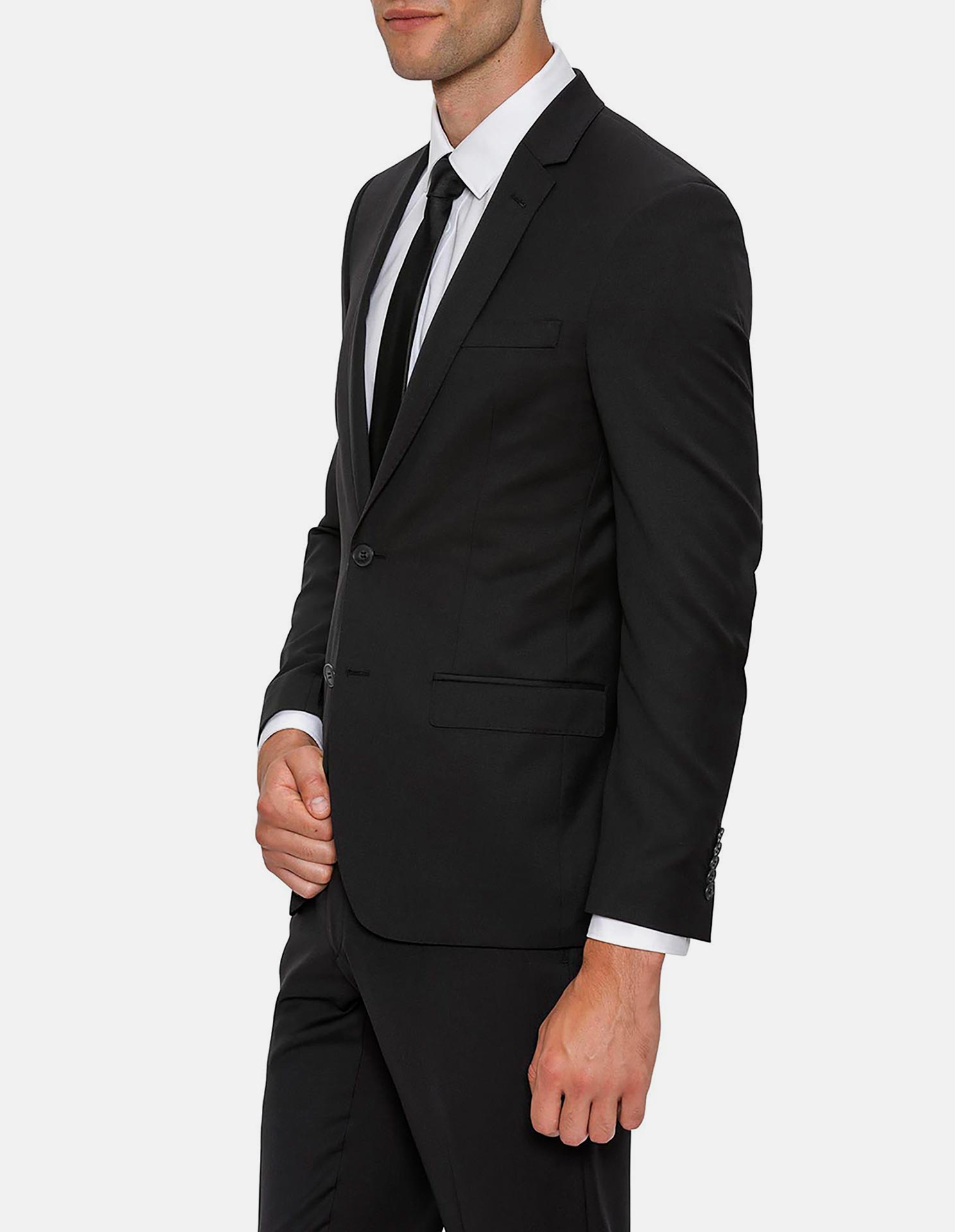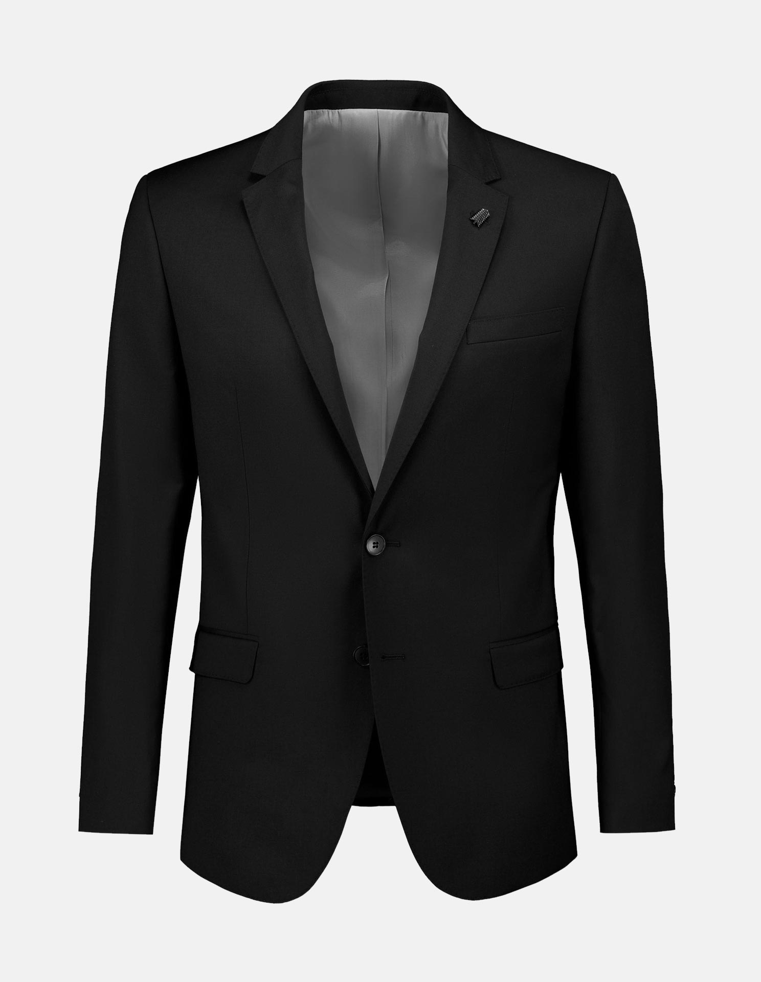 Plain Black Wool Slim Suit