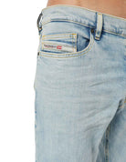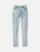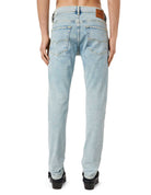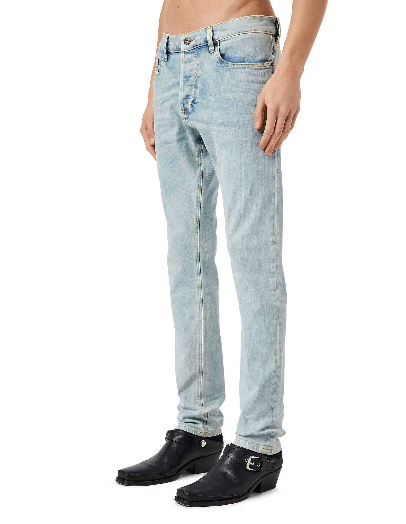 Slim fit with a slightly low crotch and button fly. The leg narrows from knee to ankle.