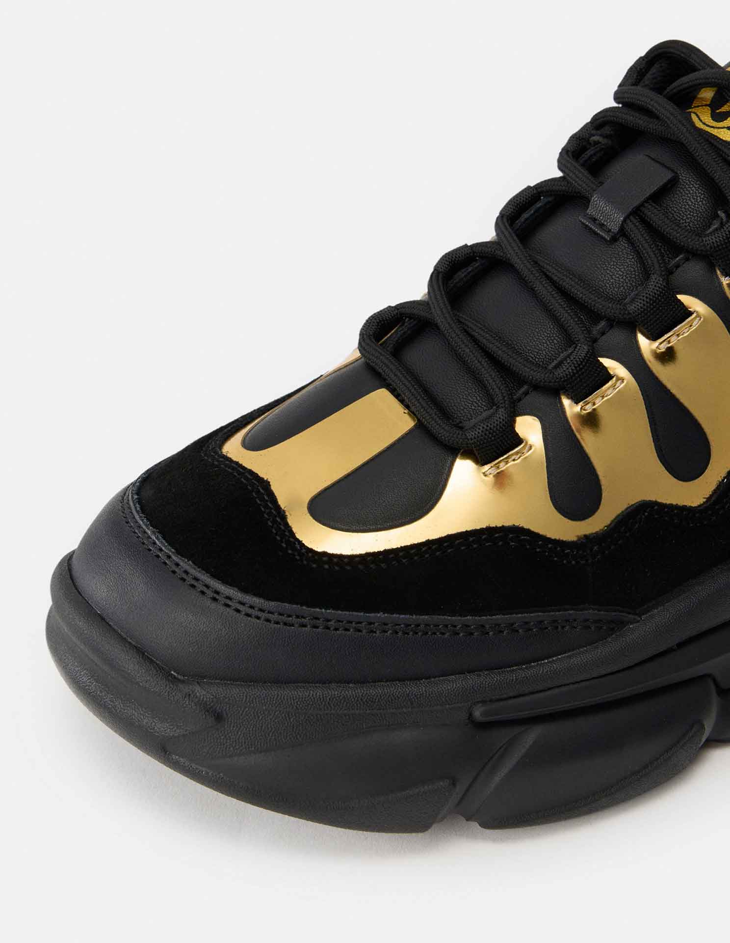 Unleash bold energy with these Just Cavalli sneakers, where sculpted black soles meet striking gold accents in a fearless fusion of sport and glamour. The dynamic silhouette and fluid overlays create a statement look that commands attention with every step. Designed for those who move with confidence, they deliver comfort, edge, and unmistakable attitude in one powerful stride.