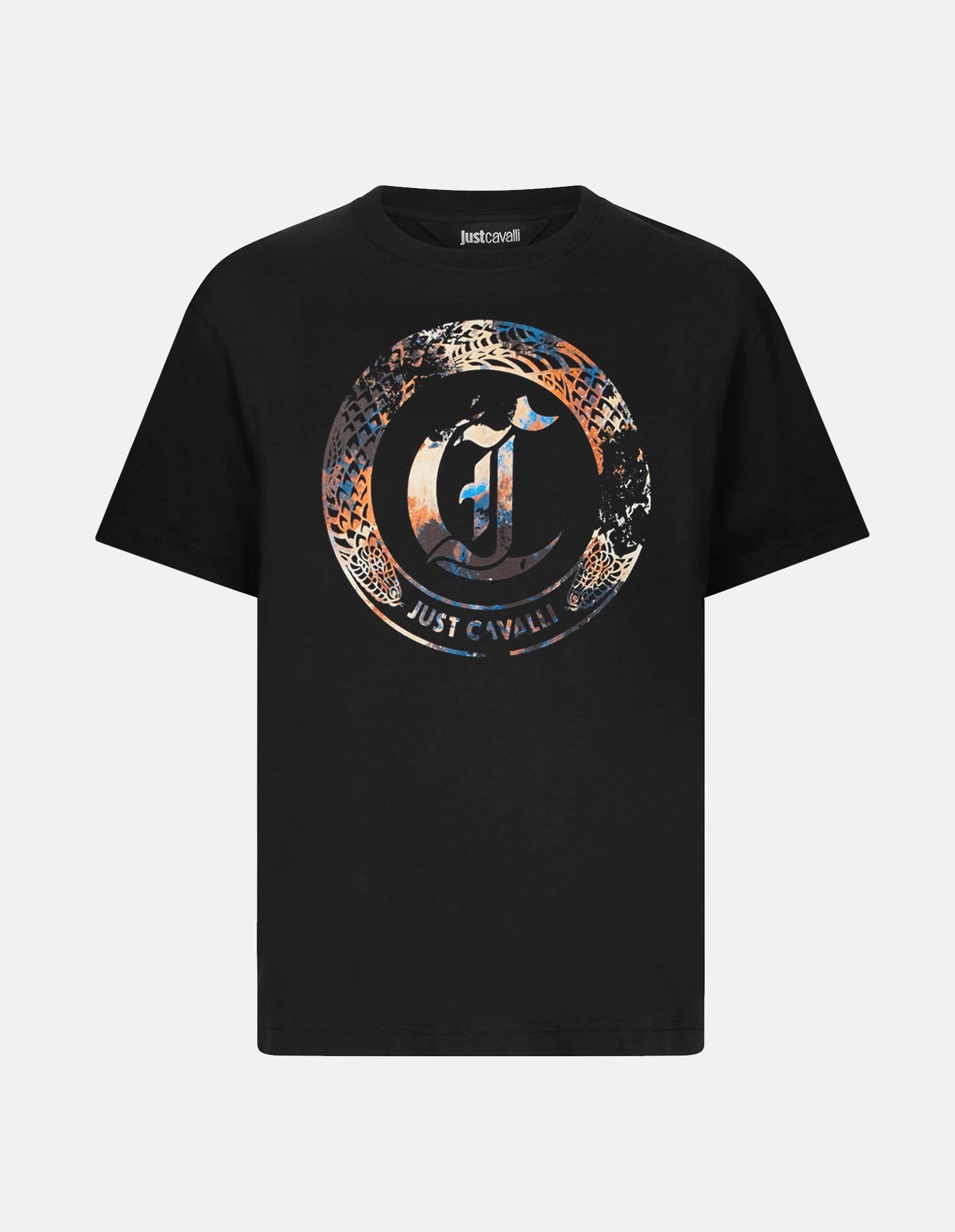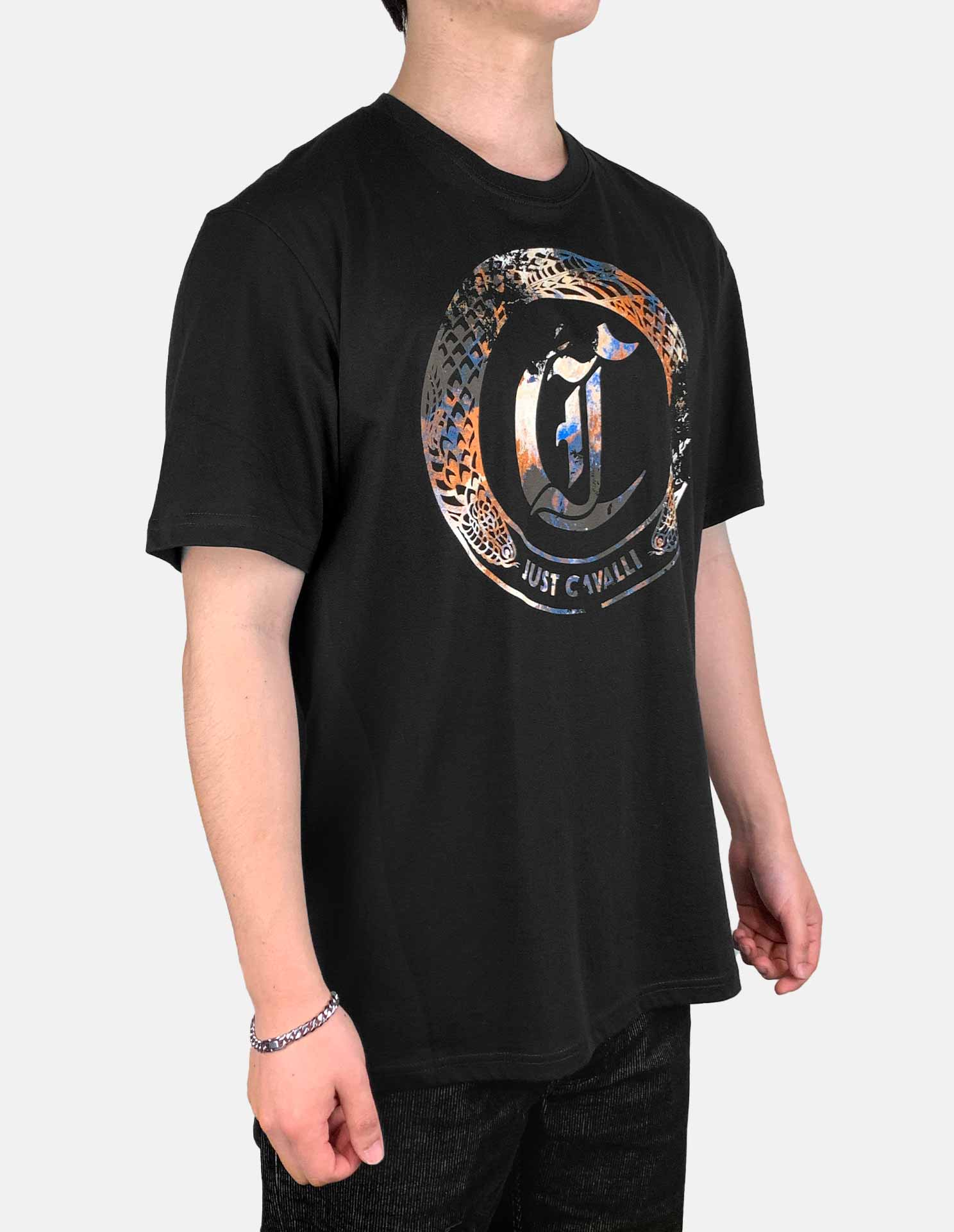 Elevate your everyday edge with this crisp, easy to wear, regular fitting black tee featuring the iconic circular Just Cavalli emblem, infused with bold, textured detailing and signature attitude. A fusion of urban energy and Italian glamour, it’s designed to make a statement from day to night. Effortlessly confident, unmistakably Just Cavalli.