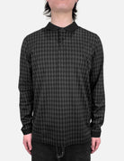 3-button long-sleeve polo in quality stretch cotton featuring the iconic Karl Lagerfeld side profile monogram print. Regular fitting with cotton rib at collar and sleeve hem ensures the best fit.