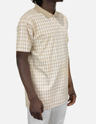 Featuring the iconic side profile of Karl Lagerfeld in a monogram print, this button-up regular fit short sleeve polo in sand is comfortable and light to beat the summer heat while keeping that refined Lagerfeld silhouette