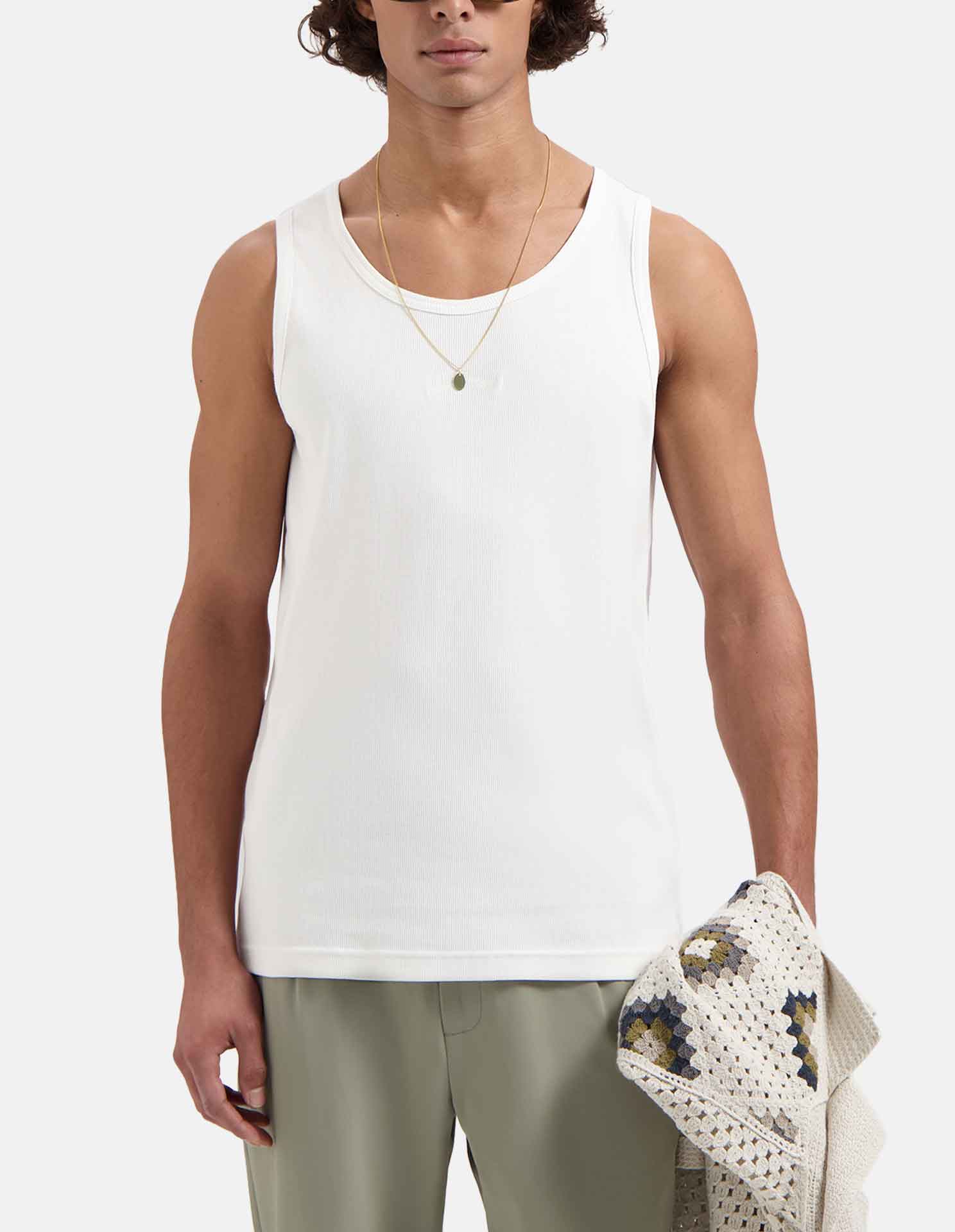 Clean and minimal, the DSTREZZED Ribbed Singlet in white is crafted from soft, stretchy cotton for a close yet comfortable fit. With its subtle ribbed texture and timeless silhouette, it’s perfect as a layering essential or a lightweight summer staple on its own.