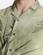 Effortlessly cool with a refined edge, this No Excess short-sleeve shirt features a soft botanical print in muted sage tones. Crafted from a lightweight, breathable fabric, it offers a relaxed fit that’s perfect for summer days or laid-back evenings. Finished with a Cuban collar, button-through front, and subtle sheen, it brings an elevated touch to casual dressing — ideal paired with chinos or tailored shorts for a polished, easygoing look.