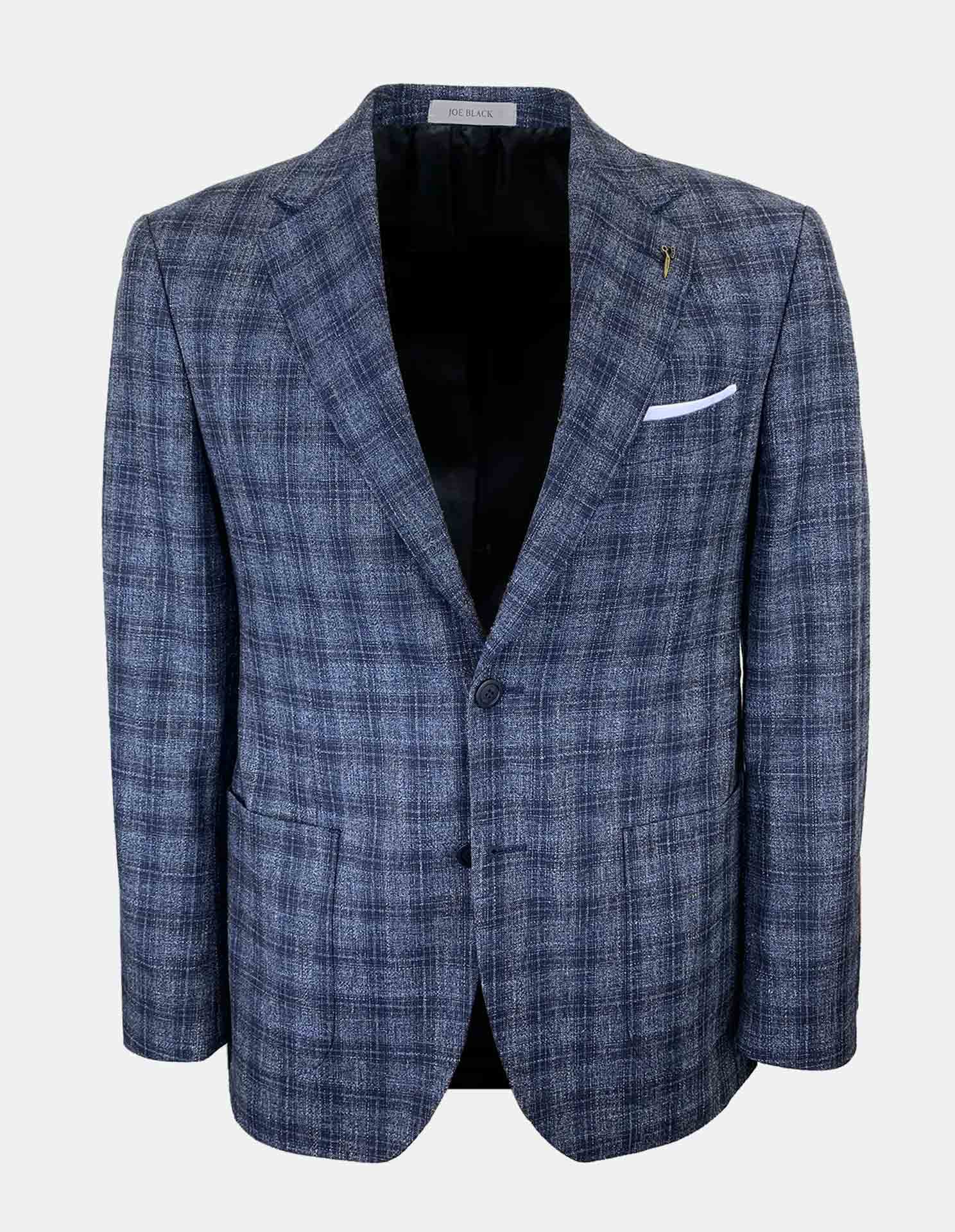 A versatile all-season tailored fit jacket, with a grey base fabric and navy overcheck. Features a half canvas front, notch lapel, classic two button front, patch pockets and side vents.