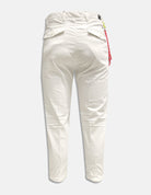 Men’s crop chino trousers in elasticated viscose blend twill, comfort fit with slightly tapered leg, two side buttons at the waistband for fit regulation, two welt pockets on the front, two welt pockets with buttons on the back, hidden fastening.