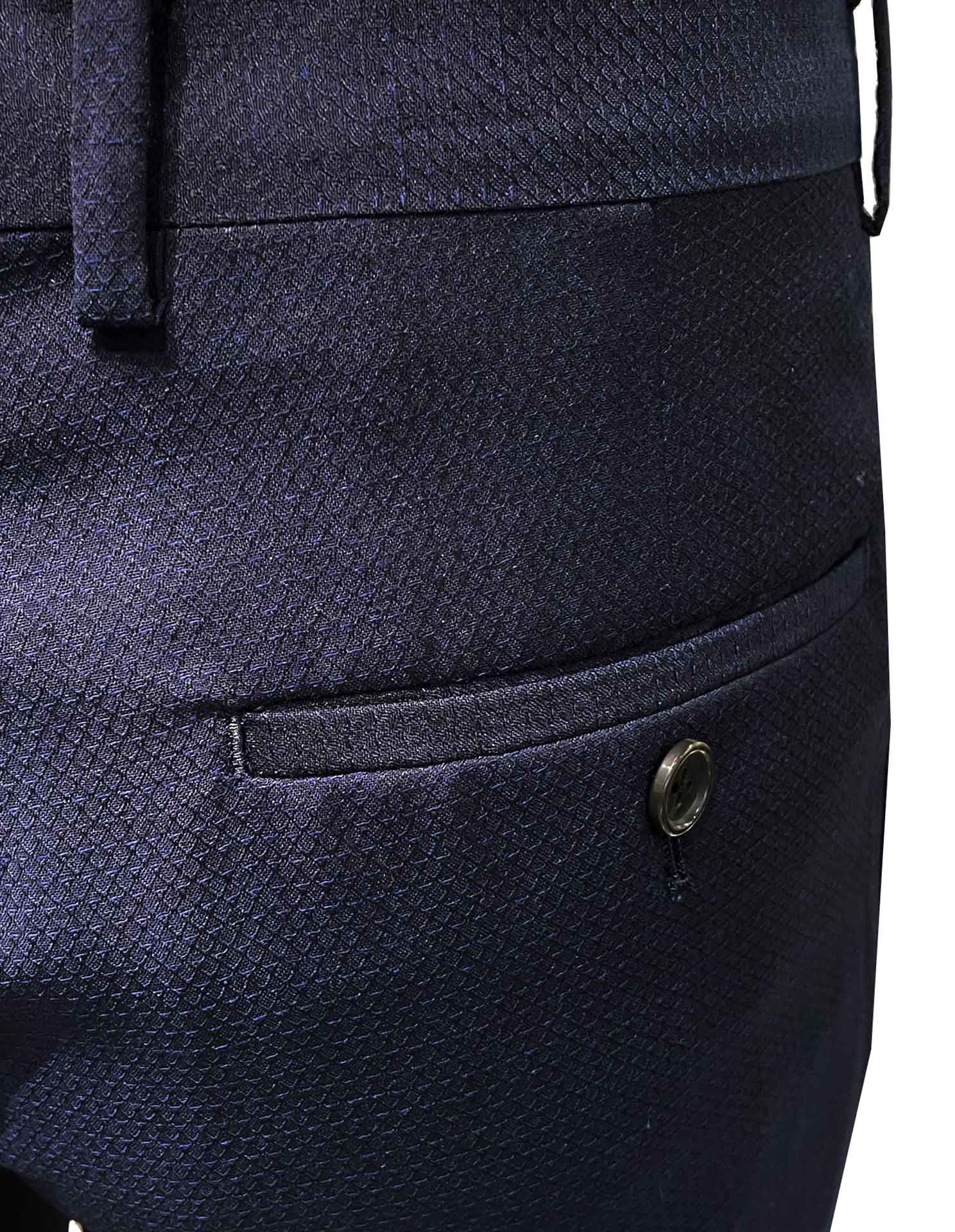 Stretch Slim Navy Blue Textured Trouser