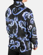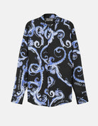 Inspired by enchanted forests, this regular-fit long-sleeve shirt in viscose features an all-over Chromo Couture print with thorny blue chrome brambles—a fresh take on the classic Versace Baroque.