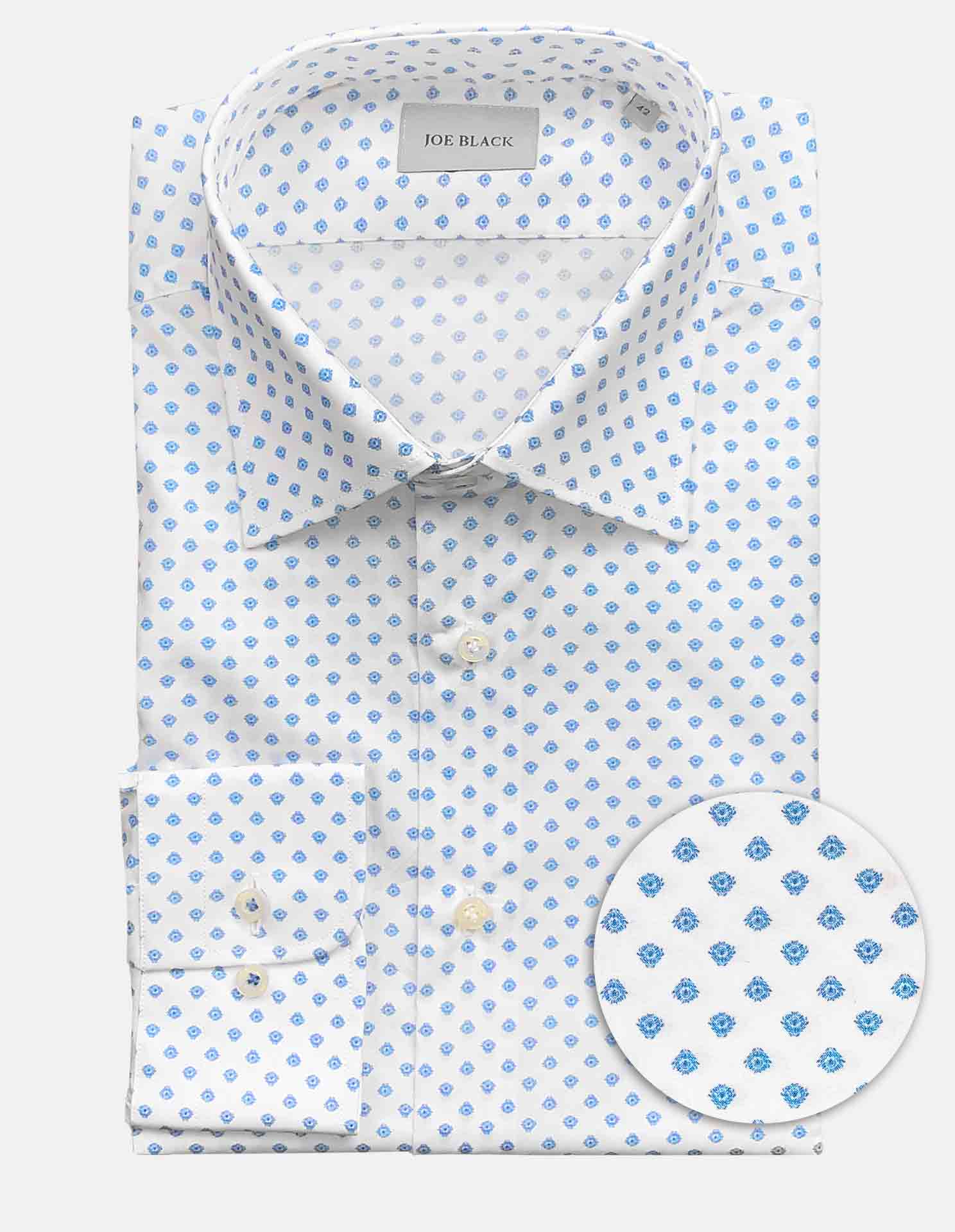 Crafted from 100% cotton and finished with a blue floral print on white, this Joe Black long-sleeve business shirt delivers refined versatility for the modern wardrobe.