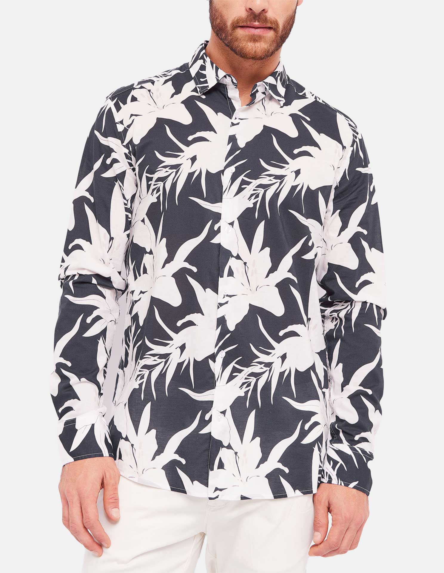 Covered in palm trees and blossoming hibiscus flowers, this regular fit cotton long sleeve shirt is made to reflect the lightness of the summer with a feel to match. Made to keep fresh and relaxed in the warmer months