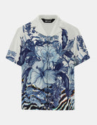 True to the Just Cavalli spirit, the colliding of the blue floral print and vibrant animalier print on this light short sleeve shirt is the perfect print to keep light and bold for summer