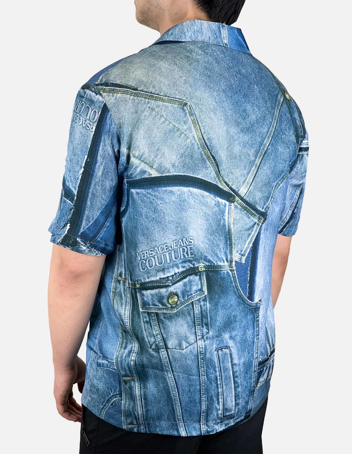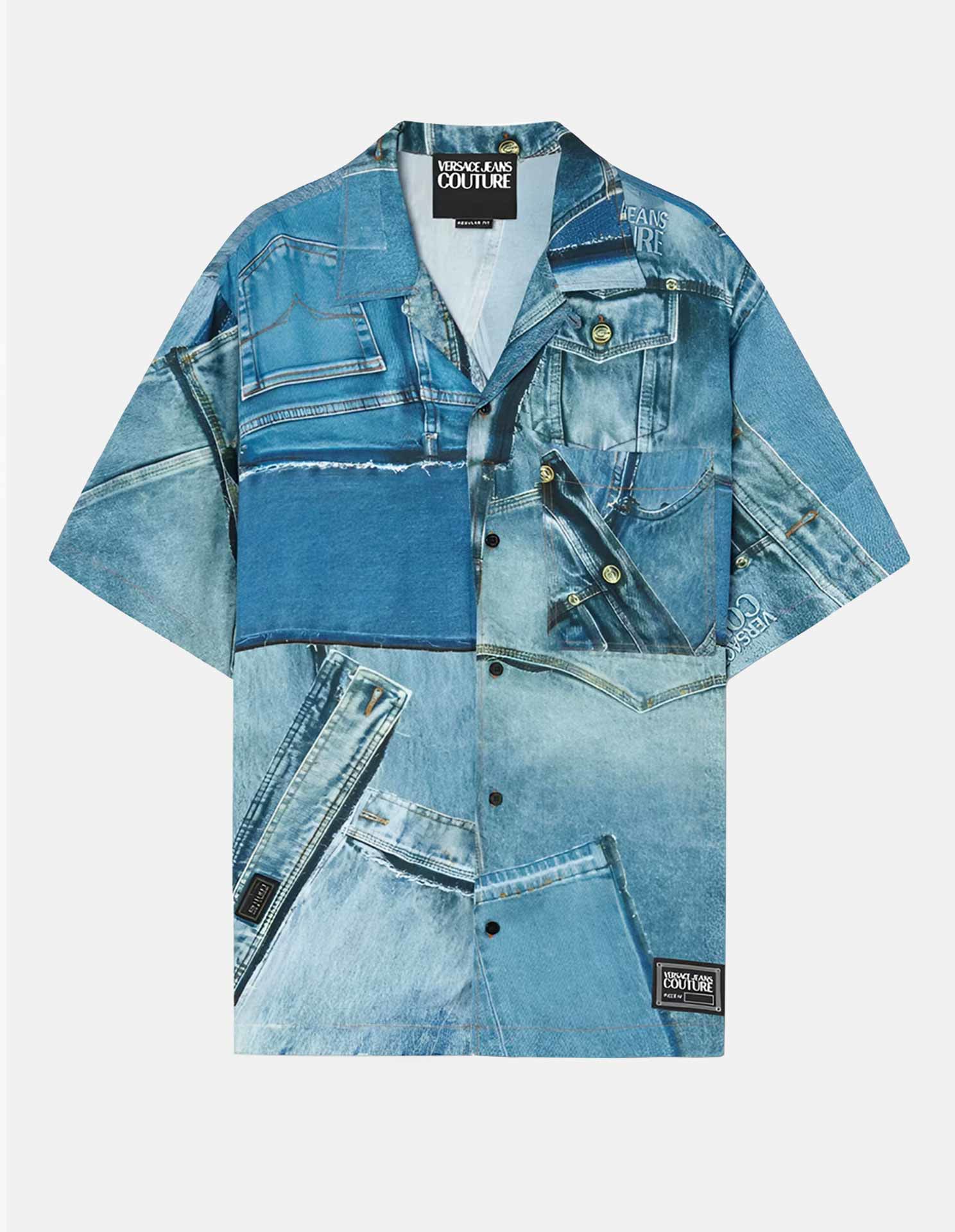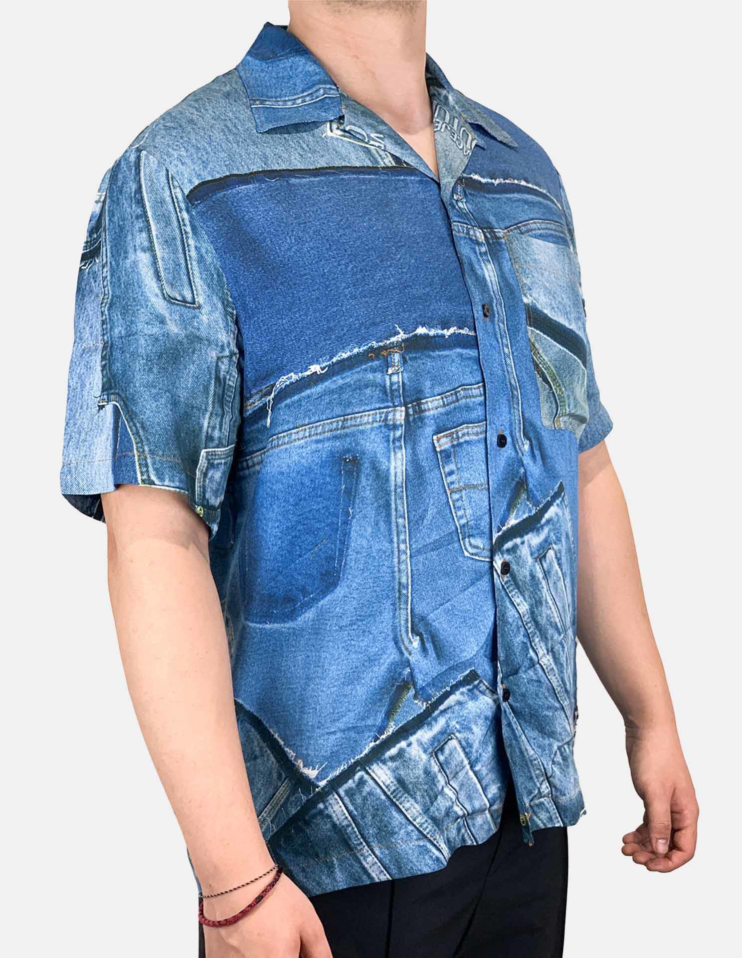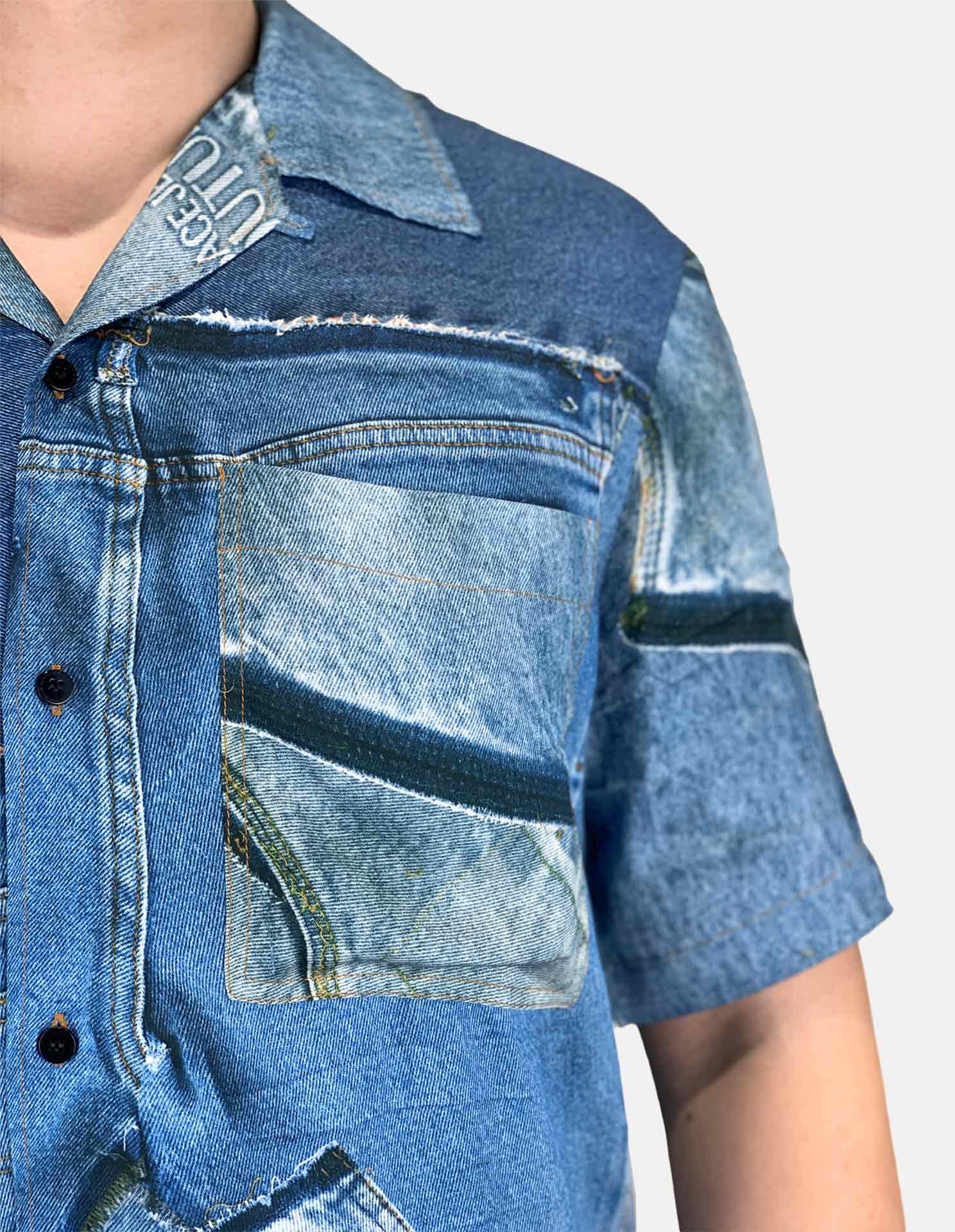 Patch Denim Print Short Sleeve Shirt