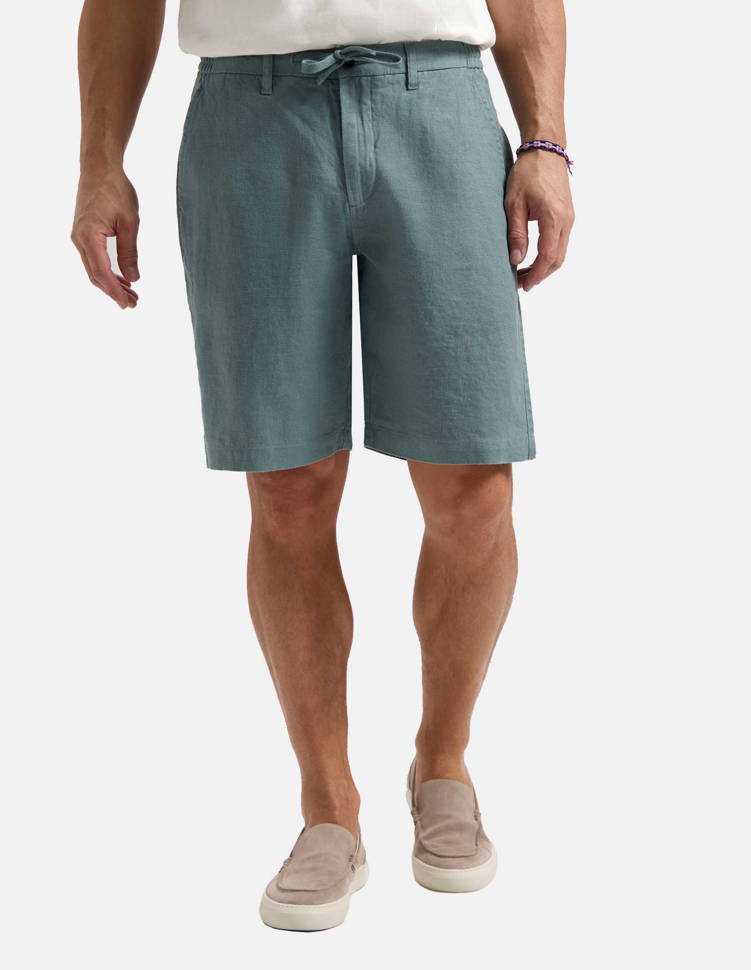 Teal Linen Drawstring Shorts