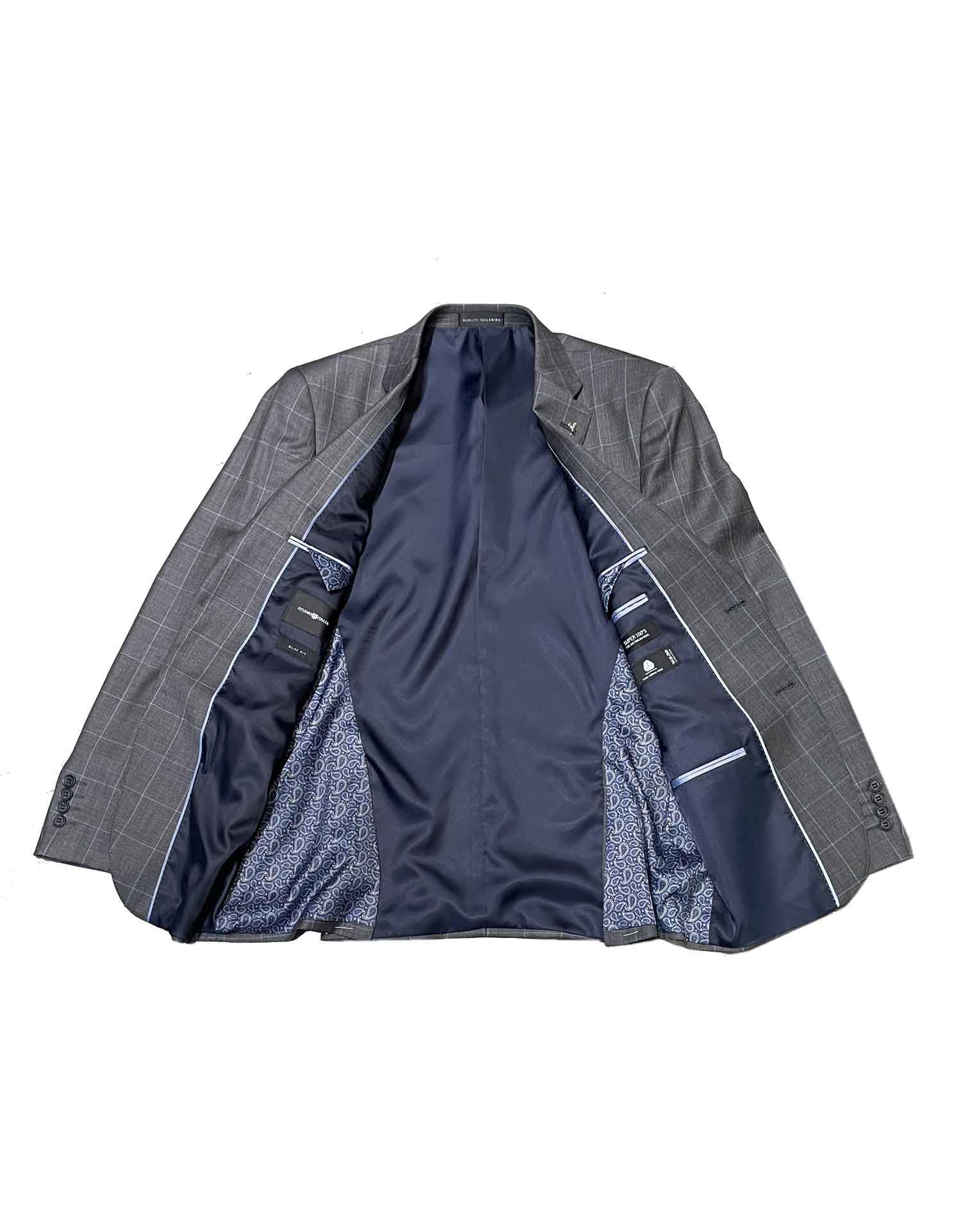 Grey Blue Over Check Suit