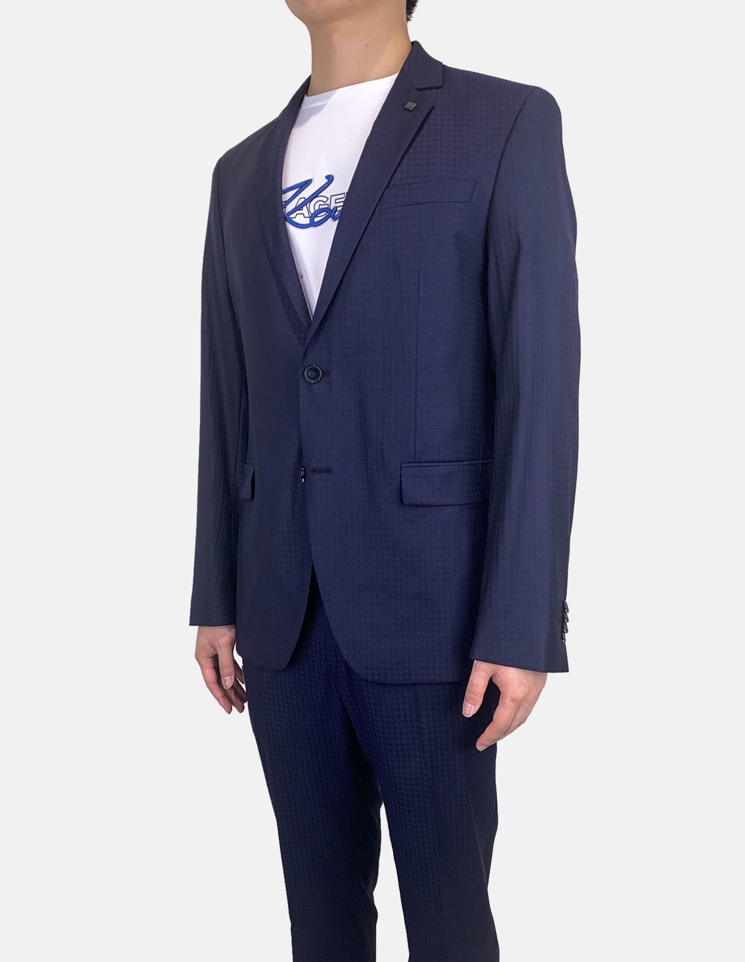 Navy Texture Check Suit