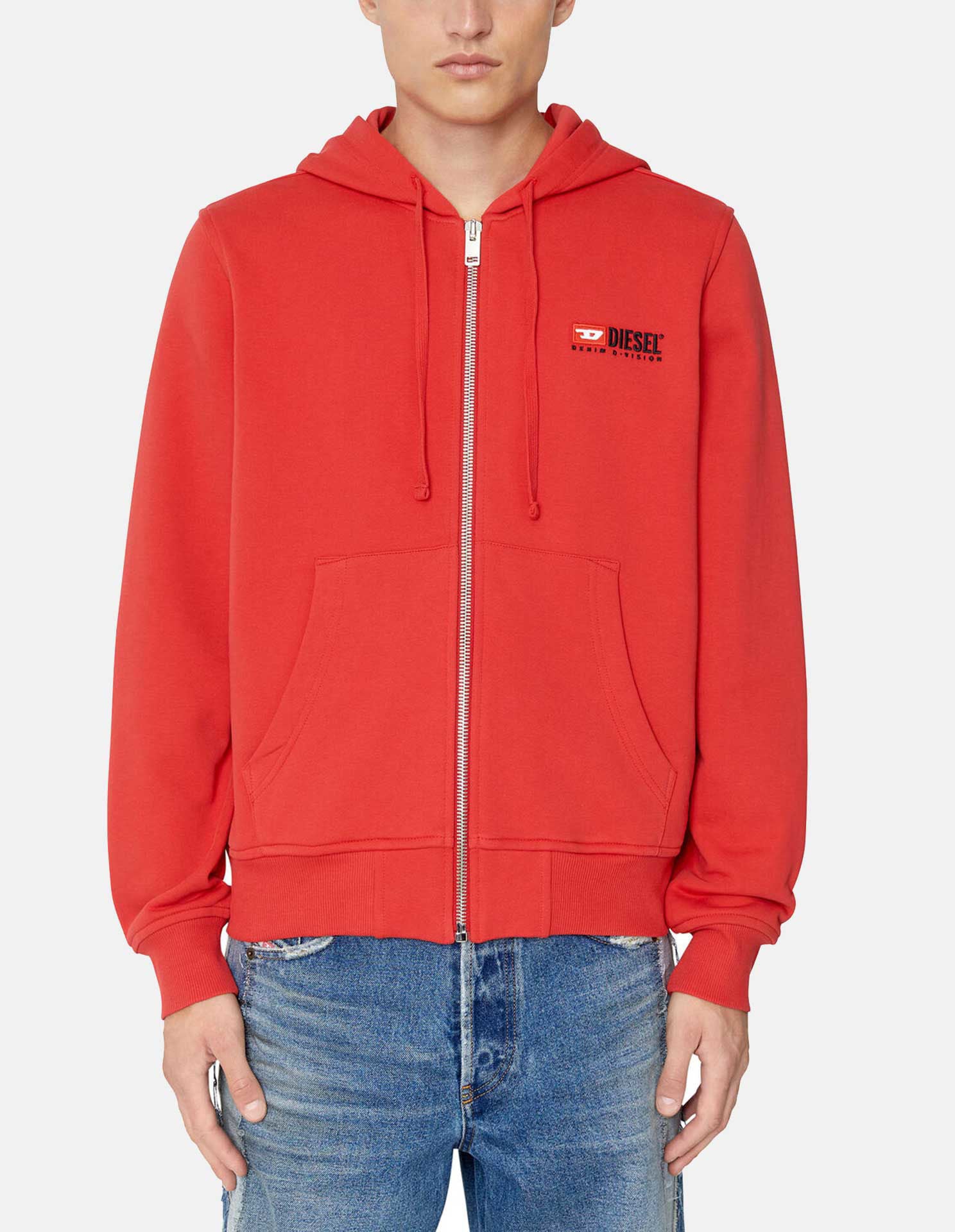 Embroidered Logo Red Sweat Jacket