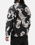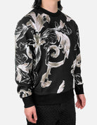 A regular fit sweatshirt featuring white ink strokes outlining the Barocco acanthus leaves. The monochromatic juxtaposition adds an edgy touch to this signature Versace Jeans Couture piece.