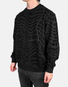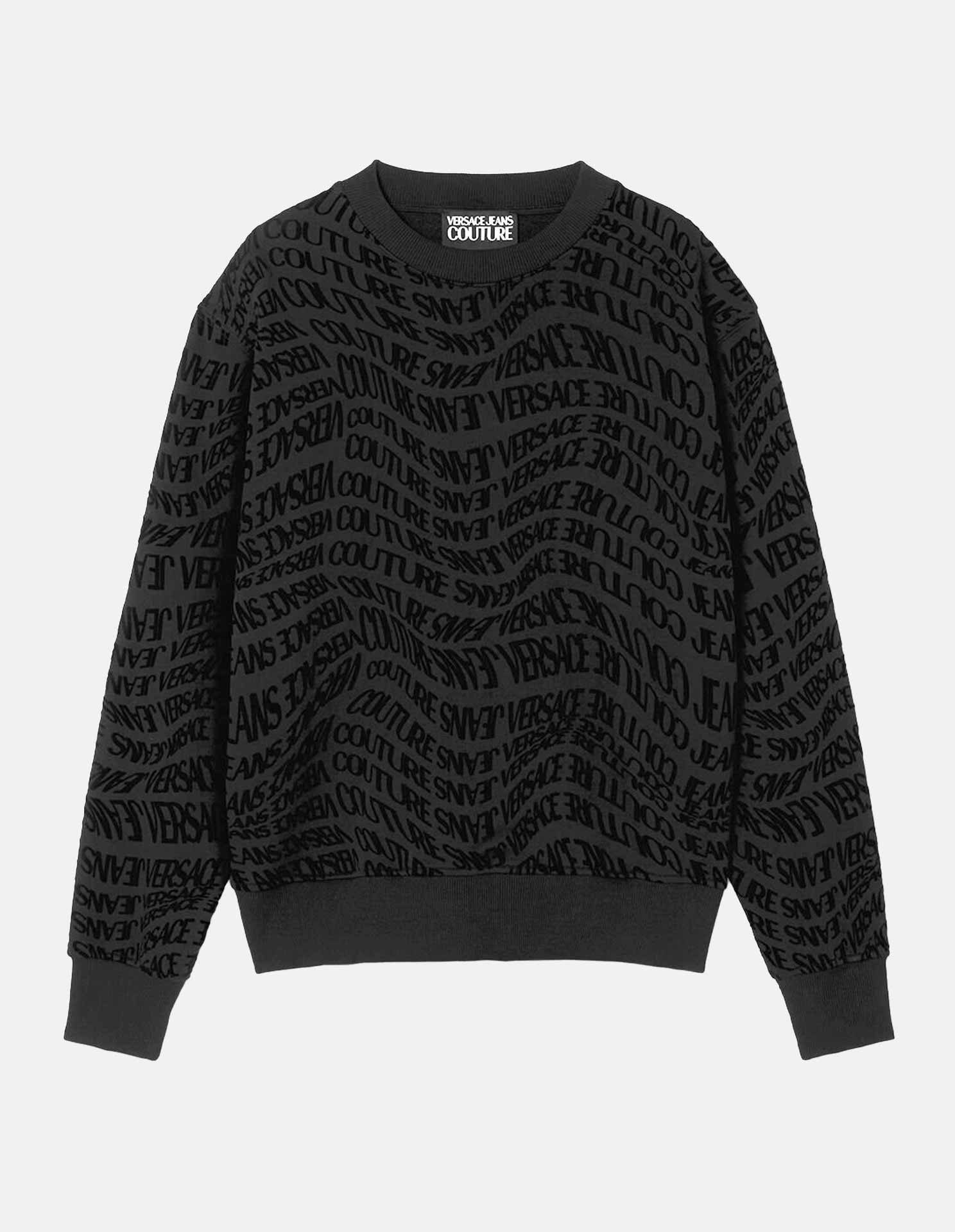 A versatile subtle statement piece crafted from soft, premium cotton fabric. Cut in a relaxed streetwear silhouette, the piece is defined by all-over black velvet logo waves, delivering a refined black-on-black couture look. The perfect wardrobe piece to elevate any casual outfit with a touch of Versace detailing and flair.