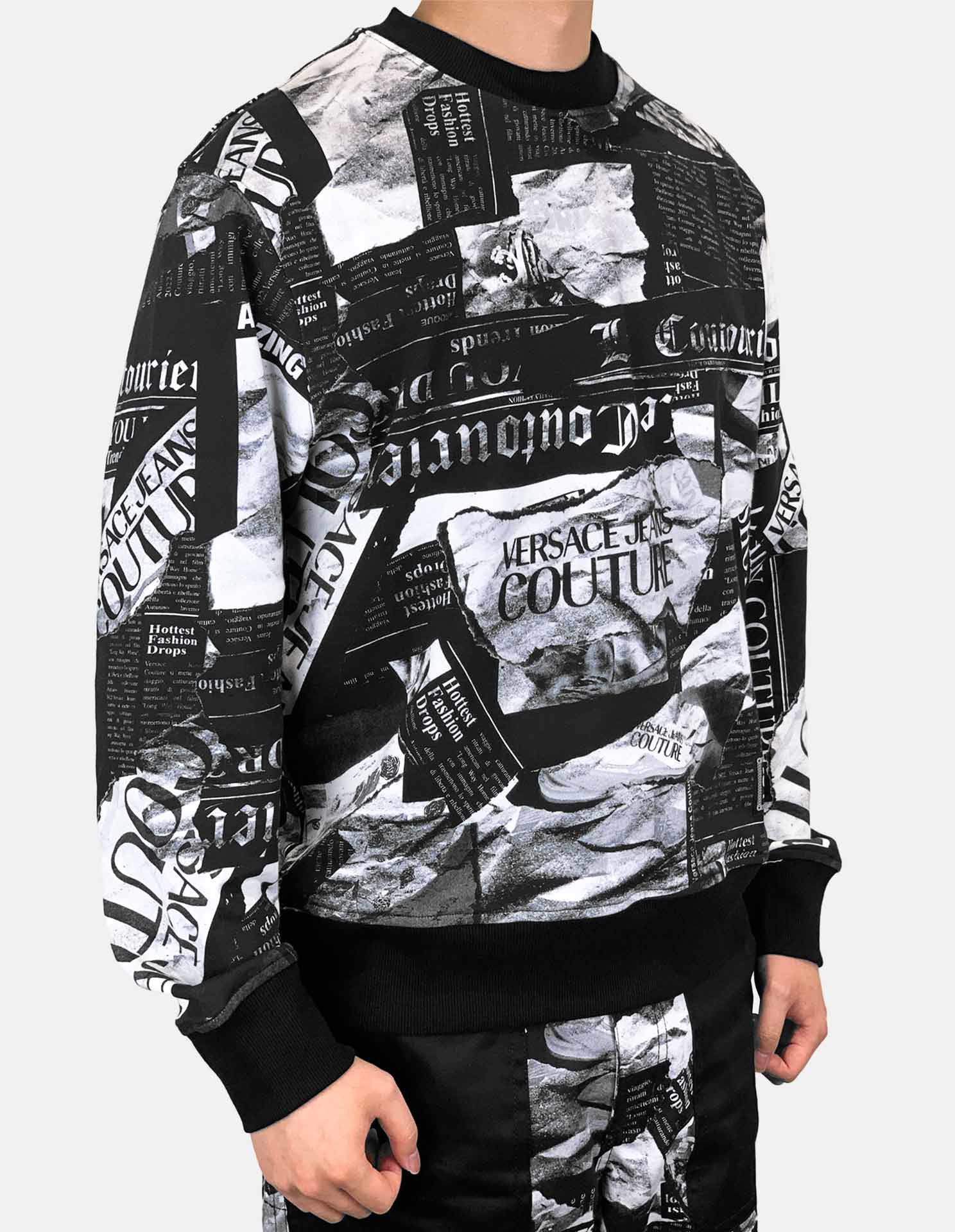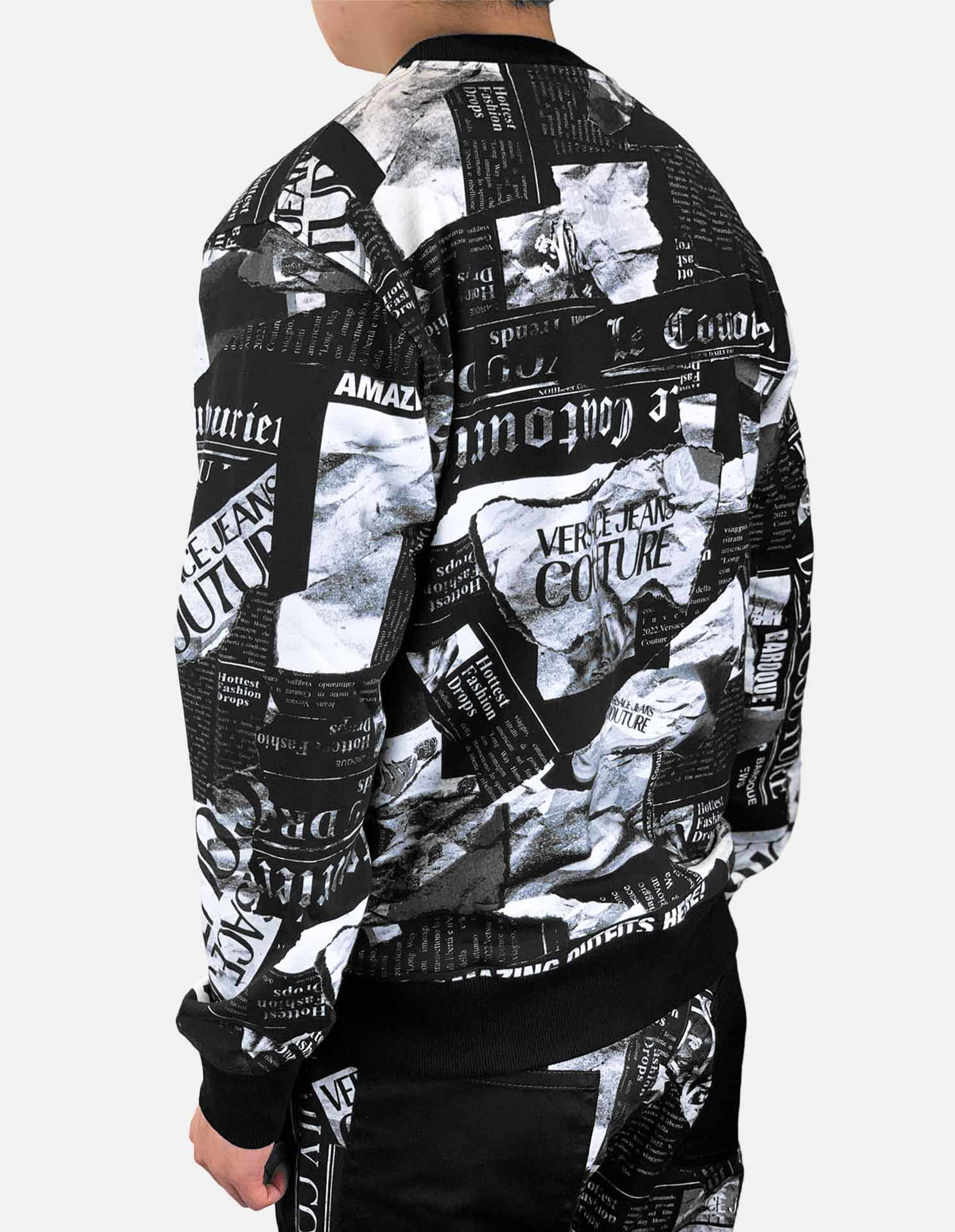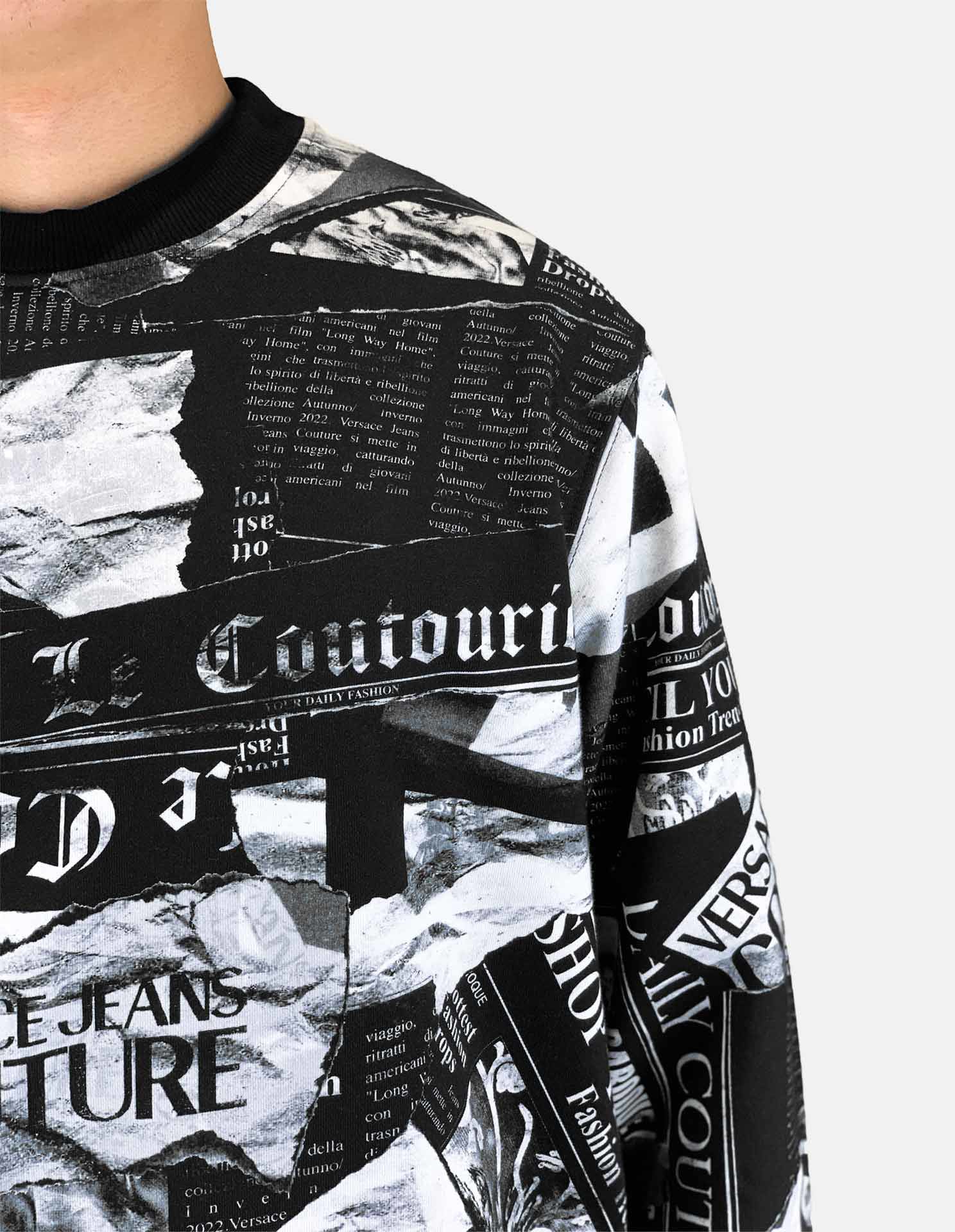 The magazine patchwork prints feature real articles that covers Versace Jeans Couture as the subject and headlines. This regular fit sweatshirt is draws back to the 2000's adding that unique Versace futuristic twist