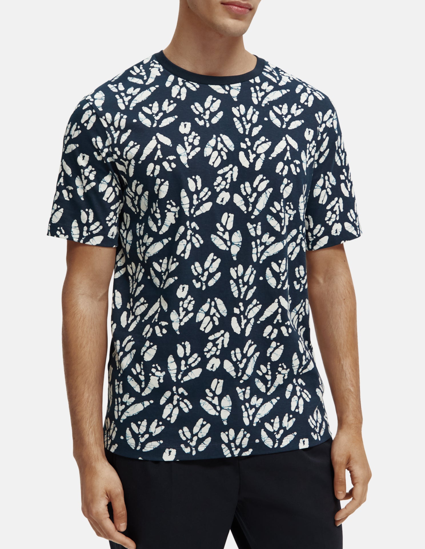 Stylish and comfortable, this T-shirt is a unique wardrobe staple. Featuring an all-over splash print, this tee is perfect for anytime wear with an easy, relaxed feel.
