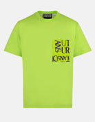 This new Doodle Logo print is a showstopper. Featured on the back panel and front pocket, this Versace Jeans Couture print on a regular-fit tee is a must-have for the season.