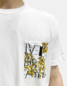 This bold Logo Baroque printed regular t-shirt is a stunner. The new print is featured on the back panel and front pocket and is a perfect tee for the season.