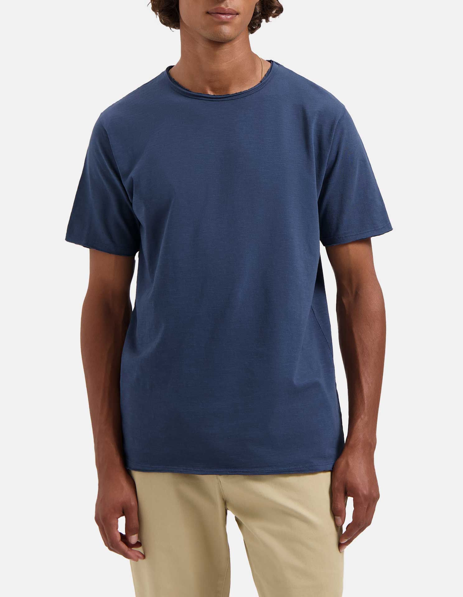 A quality, everyday t-shirt crafted from a slub-textured jersey with worn details, creating a refined yet easy silhouette. This jersey is made from BCI cotton (Better Cotton Initiative), a sustainable cotton fiber.