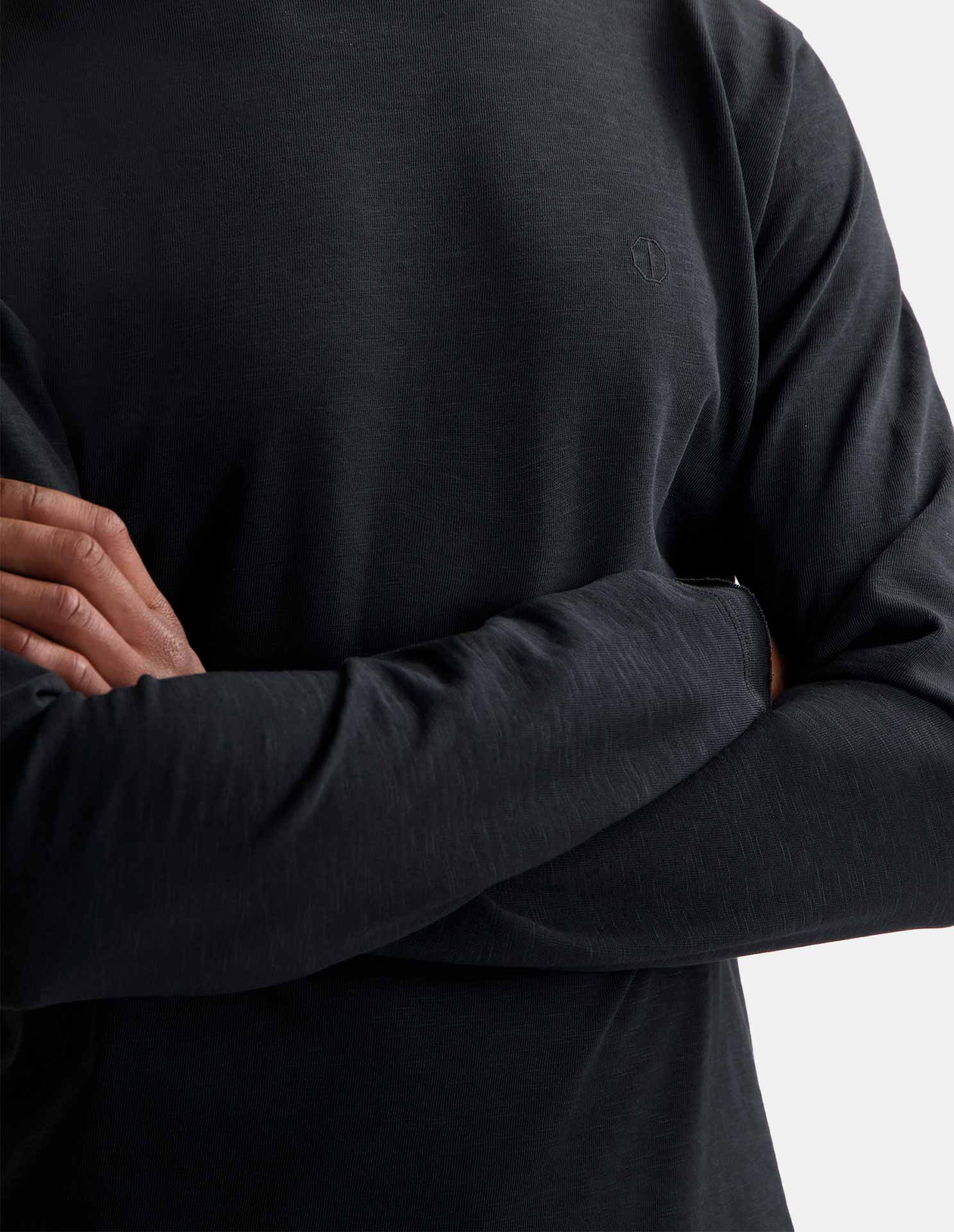 A quality, everyday regular-fit long-sleeve t-shirt crafted from a slub-textured jersey, creating a refined yet easy silhouette. This jersey is made from BCI cotton (Better Cotton Initiative), a sustainable cotton fiber.
