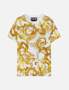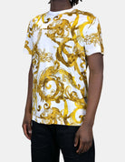 With the new romantic take on the Versace Baroque, this white slim fit t-shirt features the refreshed gold baroque that was hand-watercoloured to reimagine a Versace Jeans Couture staple