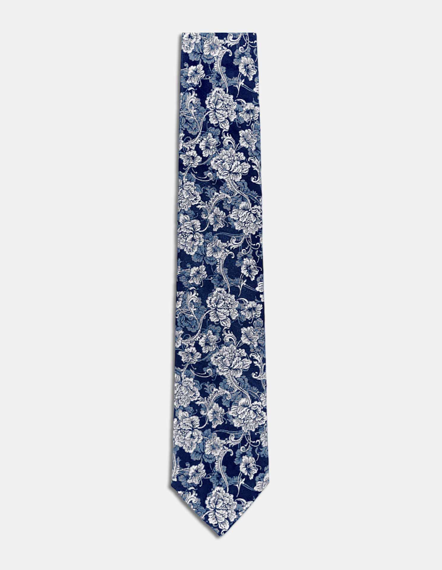 Blue Jacquard Floral Silk Tie